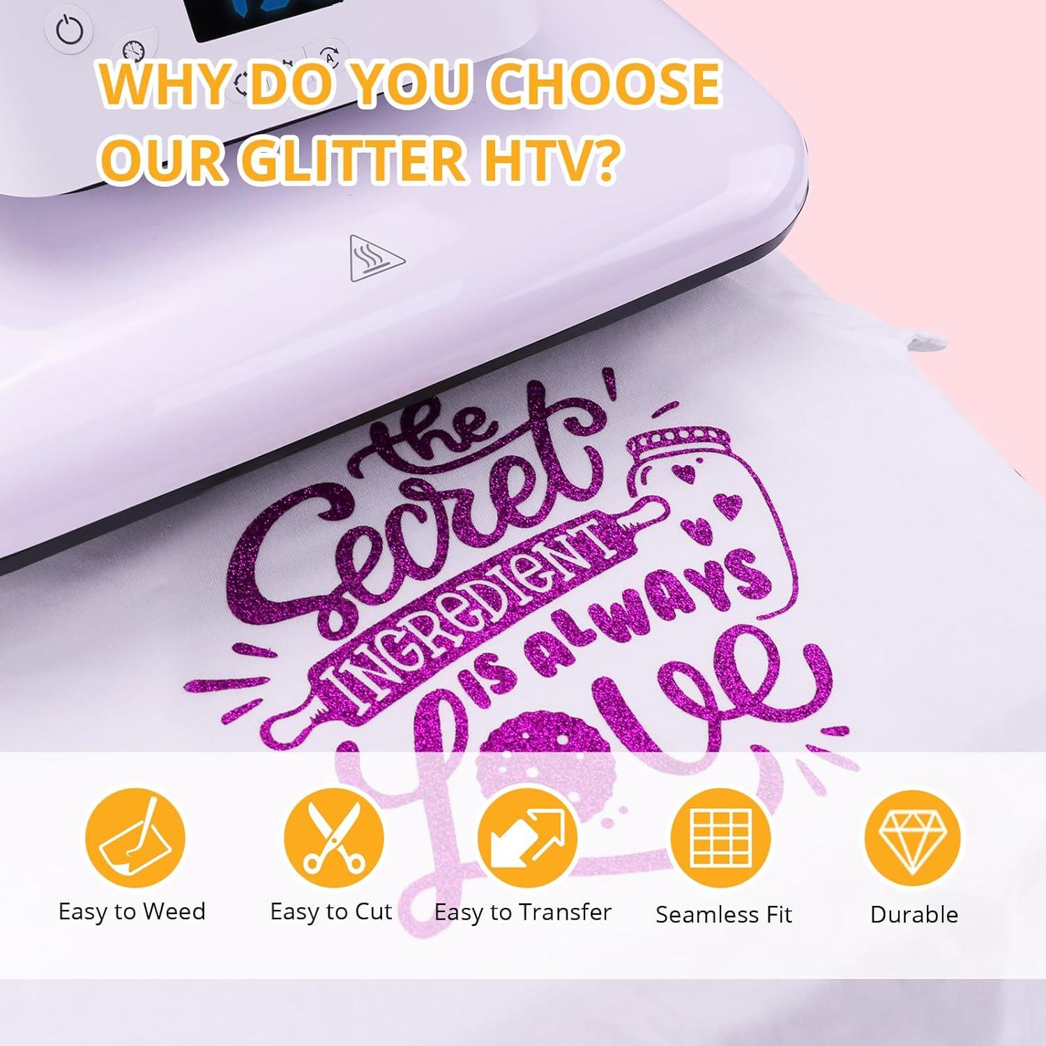 HTVRONT HTV Vinyl Rolls Heat Transfer Vinyl - 12" x 5ft Aqua Blue HTV Vinyl for Shirts, Iron on Vinyl for All Cutter Machine - Easy to Cut & Weed for Heat Vinyl Design (Aqua Blue)(Purple Glitter)