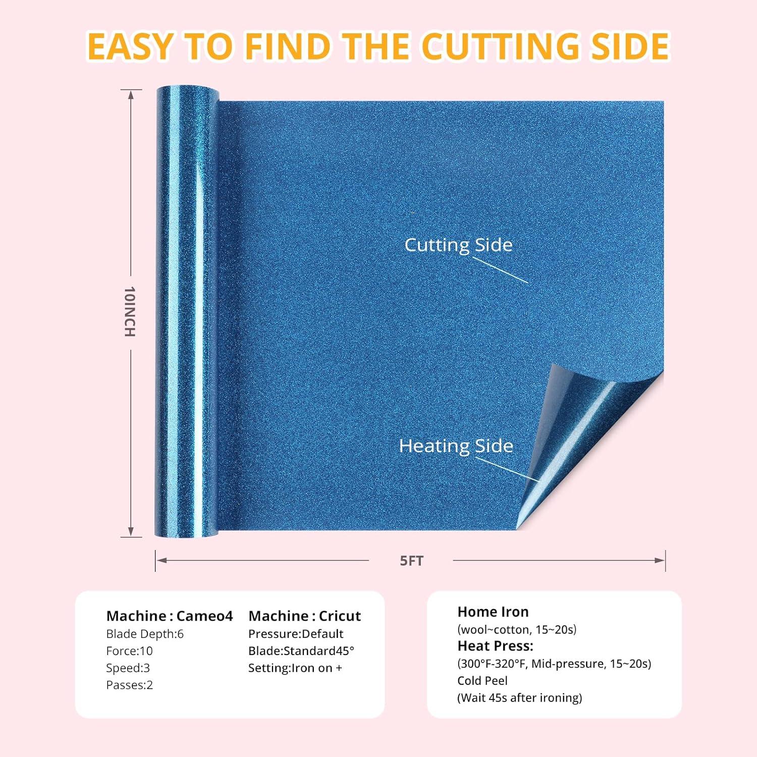 HTVRONT HTV Vinyl Rolls Heat Transfer Vinyl – 12″ x 5ft Aqua Blue HTV Vinyl for Shirts, Iron on Vinyl for All Cutter Machine – Easy to Cut & Weed for Heat Vinyl Design (Aqua Blue)(Royal Blue Glitter)