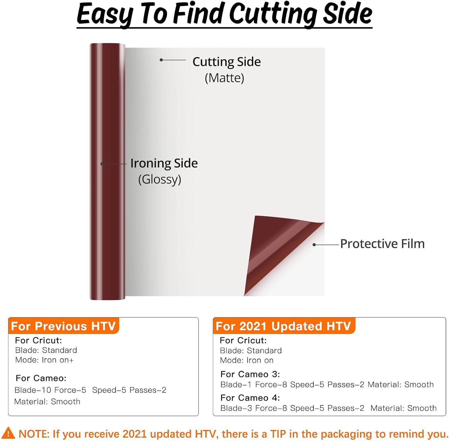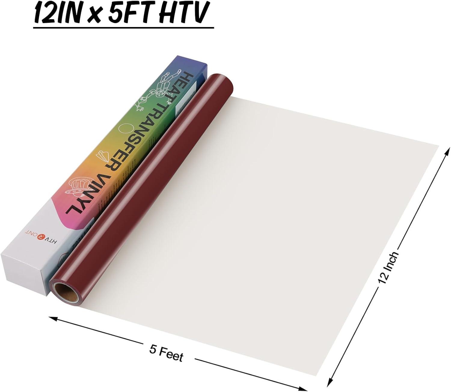 【12 inches x 5 Feet】 HTVRONT htv vinyl rolls are easy and convenient to cut into different size of art designs or logos or letters and perfect for 12×12″ and 12×24″ cutting mats. Our iron on vinyl are compatible for all cutter machines
