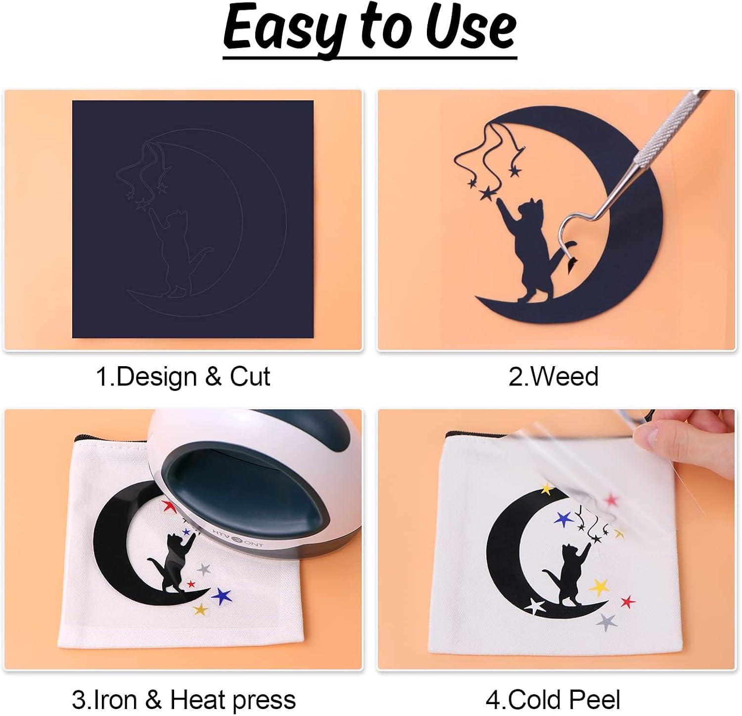 【EASY TO CUT & WEED & TRANSFER】 Our premium quality heat transfer vinyl will save your time which you may waste on each image or letter, because you can cut and weed easily through the designs just right.The iron on vinyl is sensitive to temperature and pressure, which can be heat transferred on any t-shirt easily