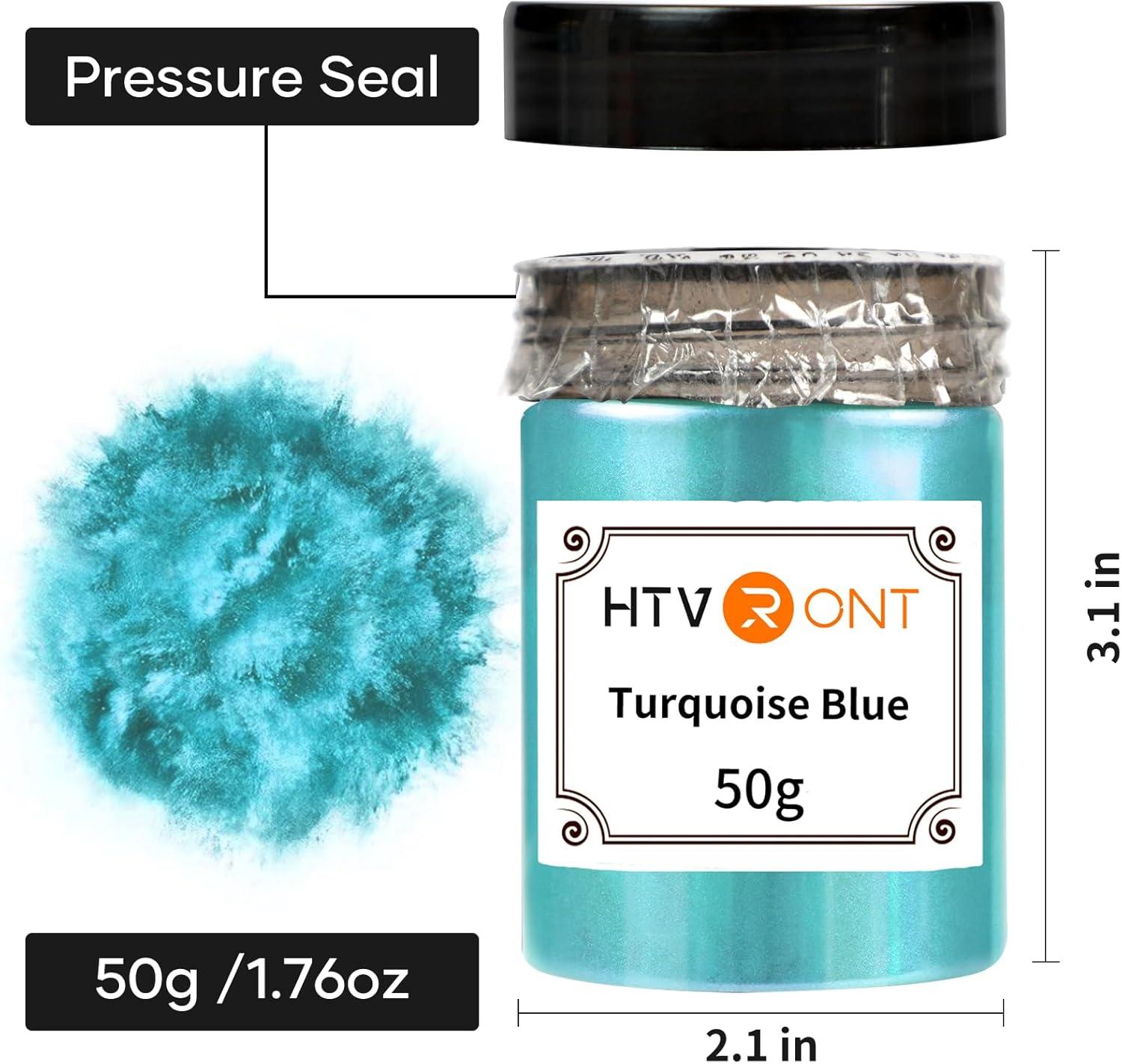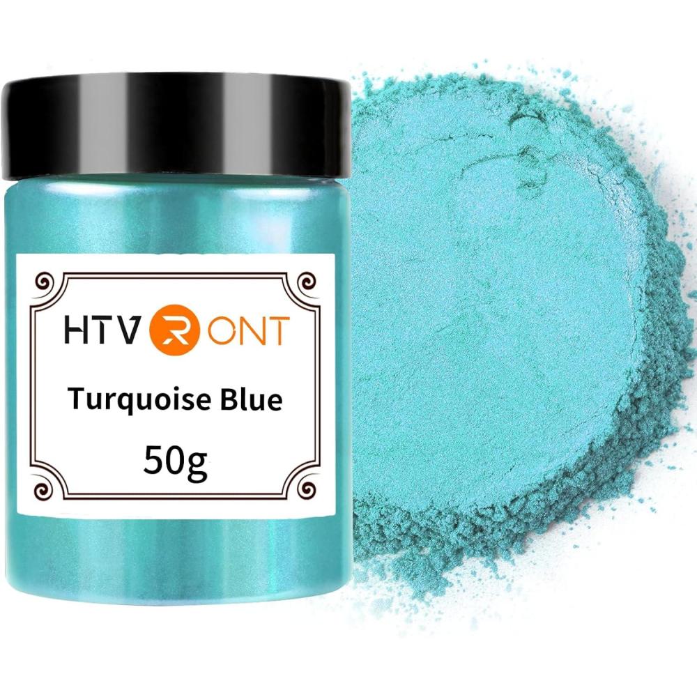 HTVRONT Mica Powder for Epoxy Resin – 1.76 oz/50 g Mica Pigment Powder, Mica Powder for Soap Making, Resin, Candle Making, Bath Bomb, Mica Pigment Powder(Charcoal Gray)(Turquoise Blue-50g)
