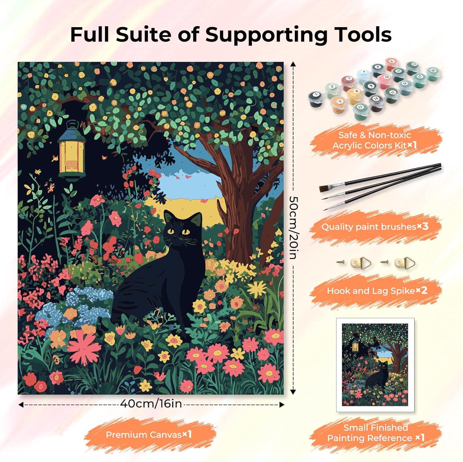 RELAXING & PEACEFUL ACTIVITY: Creating a beautiful paint by numbers masterpiece not only enhances your artistic eye, but also turns quality time with family and friends into a more delightful experience. The kit includes: HD color canvas x 1; number reference paper x 1; brushes x 3; paint kit x 1; small finished painting reference x 1; hooks x 2