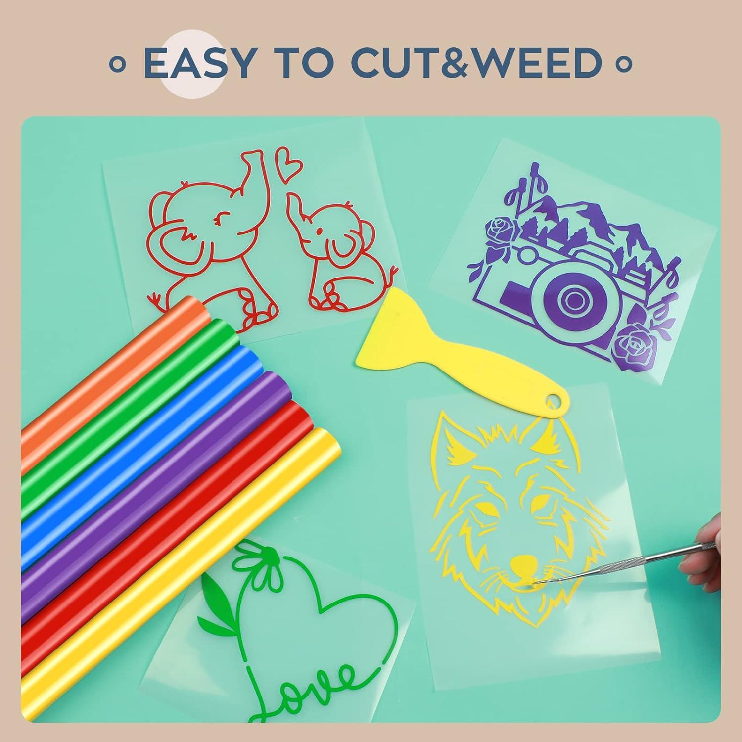HTVRONT Permanent Vinyl Bundle, 8 Colors 12" x 5ft Permanent Adhesive Vinyl Rolls Compatible with Cricut Cutting Machine, Silhouette, Cameo Cutters, Signs, Scrapbooking, Craft, Die Cutters(Multicolor)
