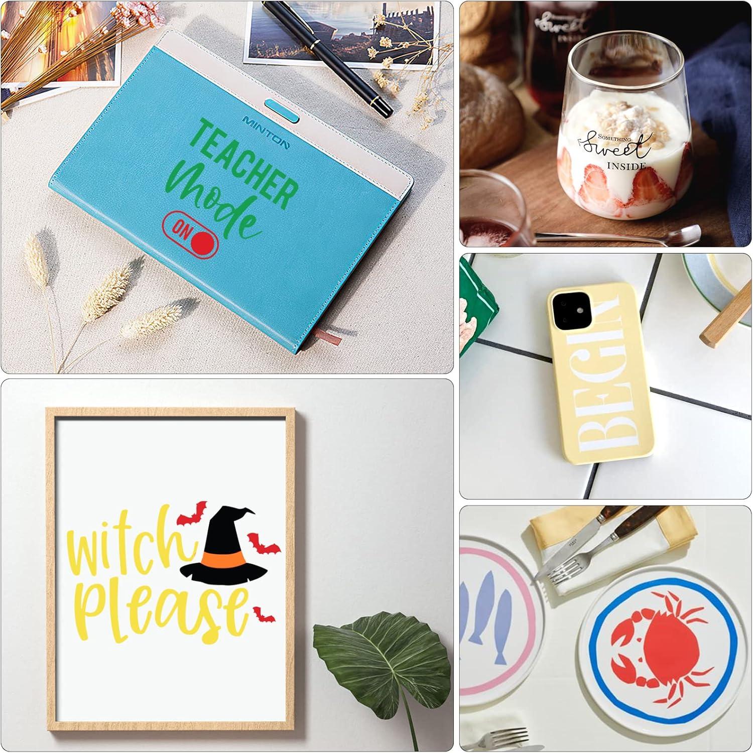 VIVID COLORS & WIDELY USE: HTVRONT vinyl compatible with Cricut cutting machine set includes 13 rolls in vivid colors, which can excite more of your creative ideas! Also, our permanent vinyl features wide applications and works on any smooth surface. You can apply your favorite images to a variety of projects easily, such as Christmas decorations, mirrors, windows, laptops, notebooks, phonecases, signs, cups, labels, etc