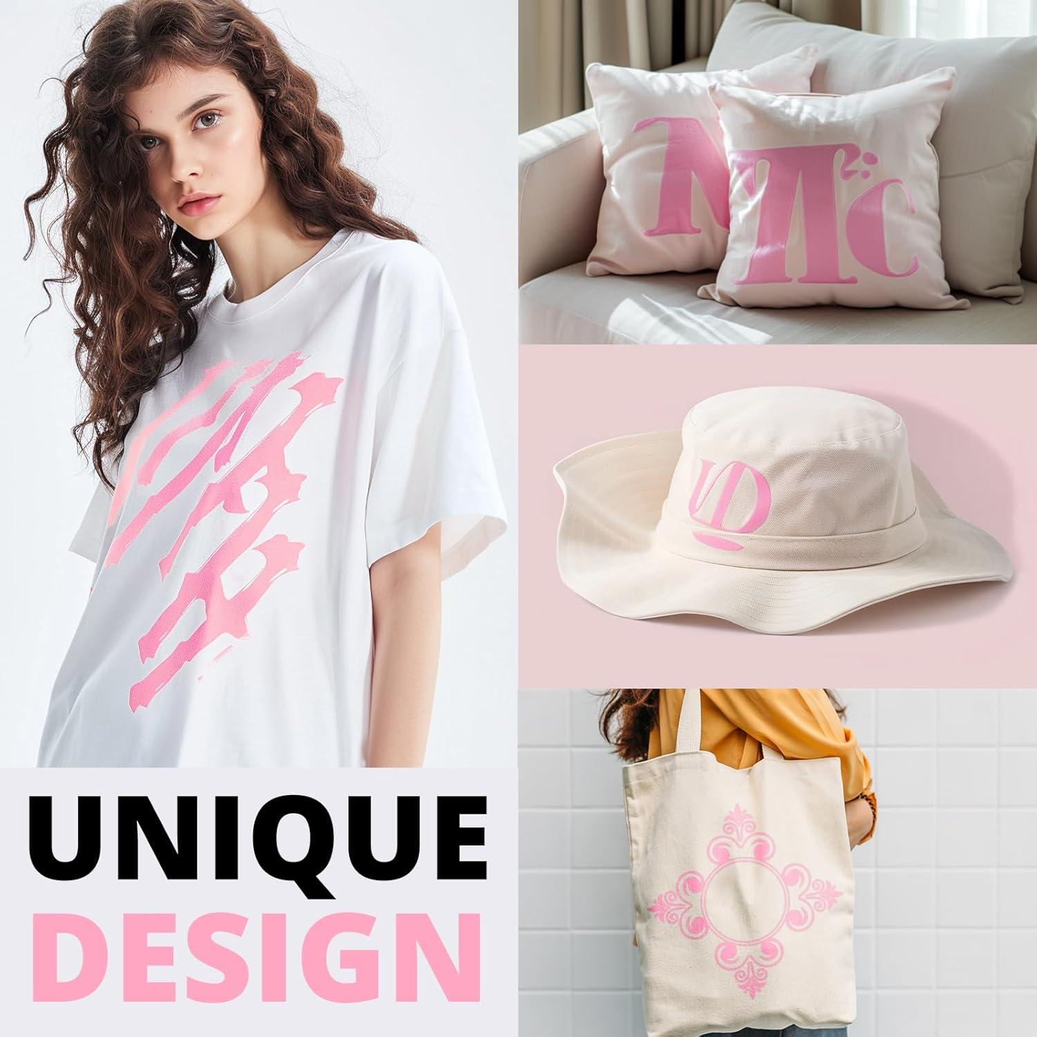 【SUPERIOR MATERIALS & DURABLE】Pink heat transfer vinyl is made of professional grade PU material, which makes it extremely stretchable and durable. Our HTV vinyl sheet is very thin, easy to operate, environmentally friendly, safe to wear, perfect for decorating children's clothing and Accessories.