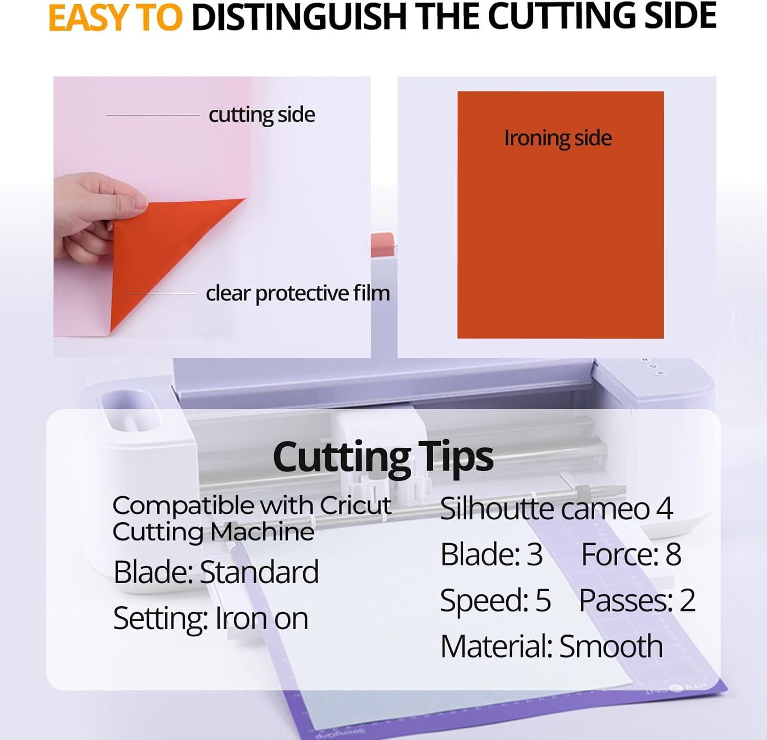【EASY TO CUT & WEED & Transfer】The pink htv heat transfer vinyl bundle is smooth and thin, so it is easier to cut and weed, which saves the time you may waste on each image or letter, and even complex designs can be transferred perfectly. Our iron on vinyl for t shirts can be compatible with Silhouette Cameo, Cricut Maker and Heat Press, very easy to use, you can easily create unique and personalized design.