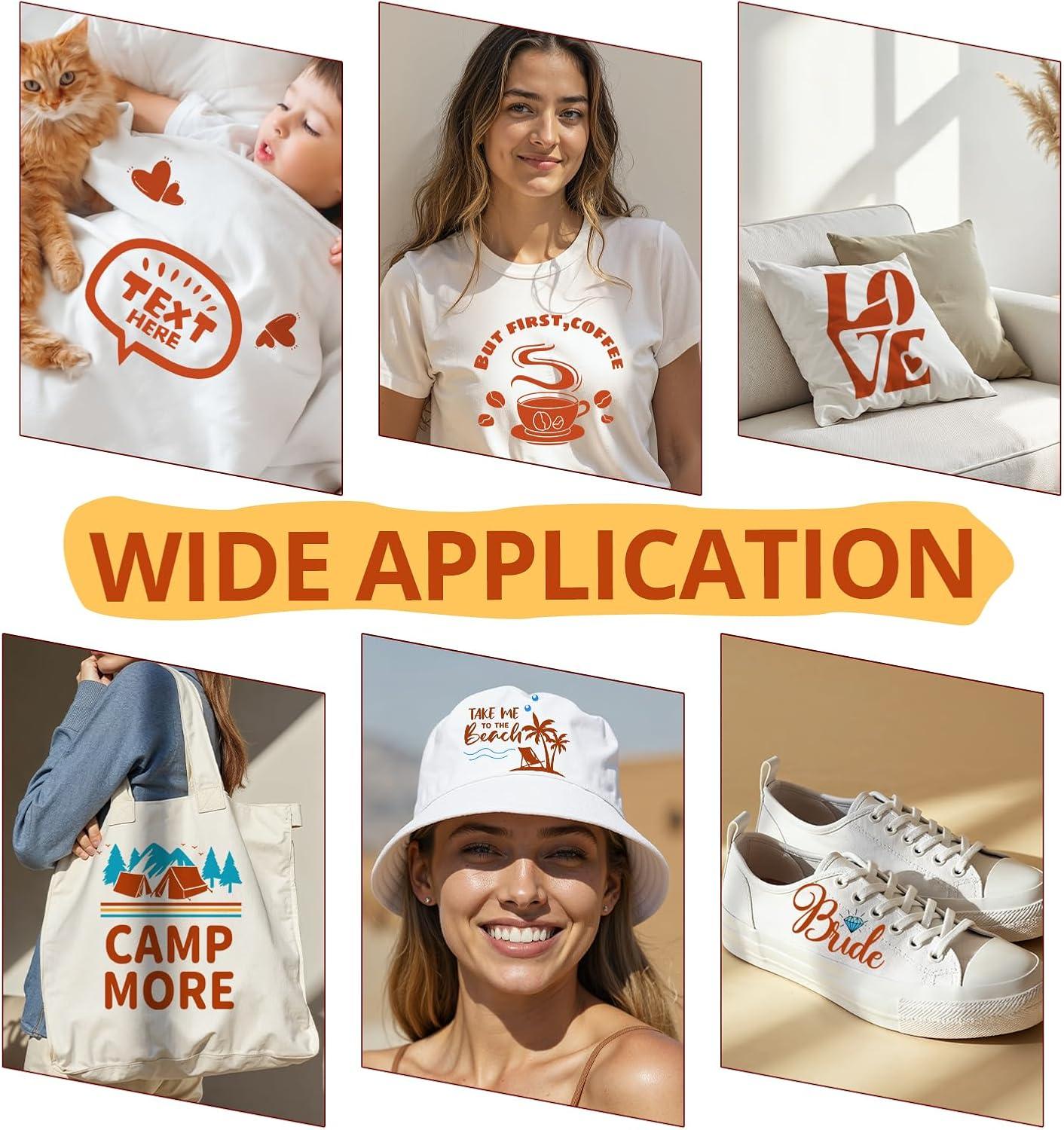 【WIDE APPLICATION】This htv vinyl bundle allows you to create amazing handcrafted projects! It can be used on fabrics such as T-shirts, hats, shoes, pillows, canvas bags, school bags, etc. The most thoughtful gifts for birthdays and festivals, customize your own designs!