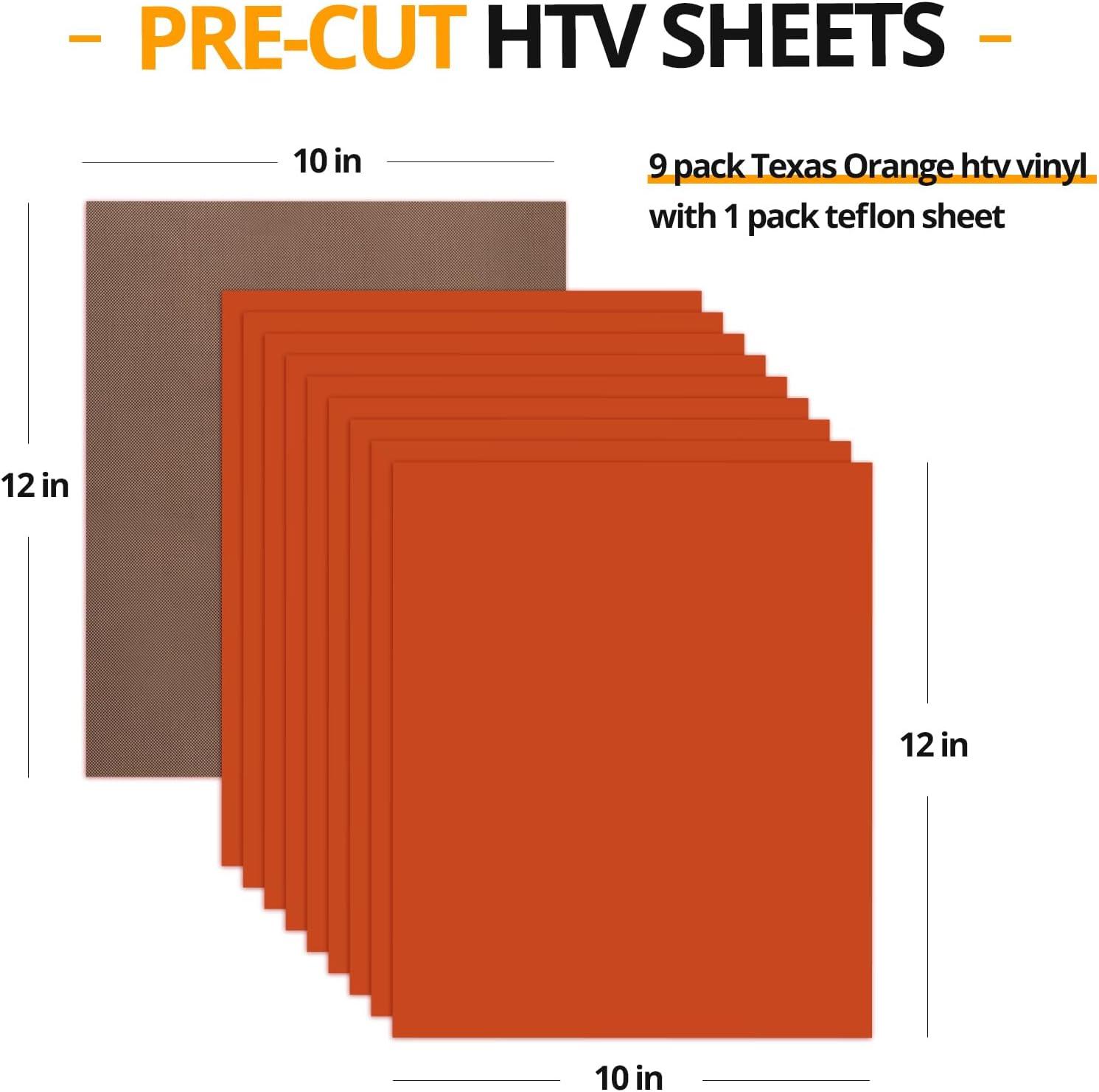 HTVRONT Pink HTV Heat Transfer Vinyl Bundle: 11 Pack 12" x 10" Iron on Vinyl for T-Shirt, Heat Transfer Vinyl for Silhouette Cameo or Heat Press Machine(Texas Orange)