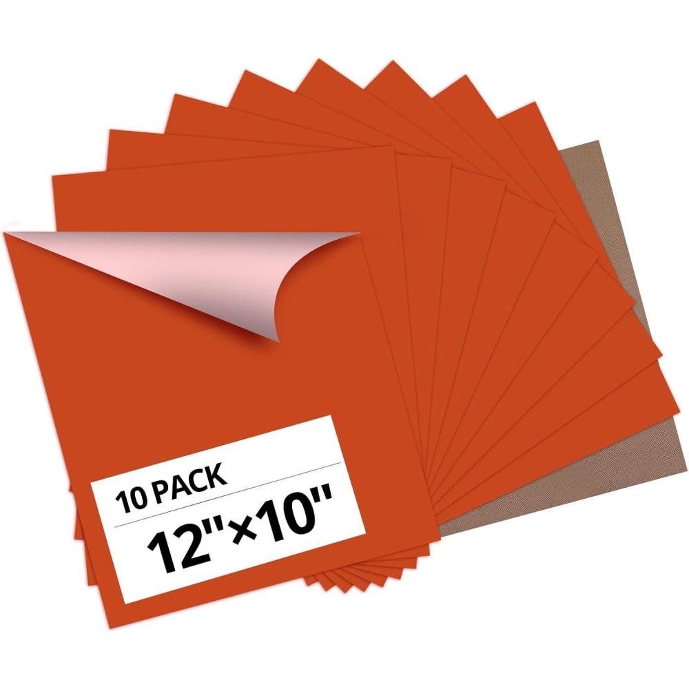 【PERFECT PRE-CUT SIZE】Our pre-cut 12*10 HTV fits most popular cutting mats and machines, easy and convenient to cut into different size of art designs or logos or letters. The combination of 10pcs of heat transfer vinyl and 1pc of teflon sheet can better meet your needs.