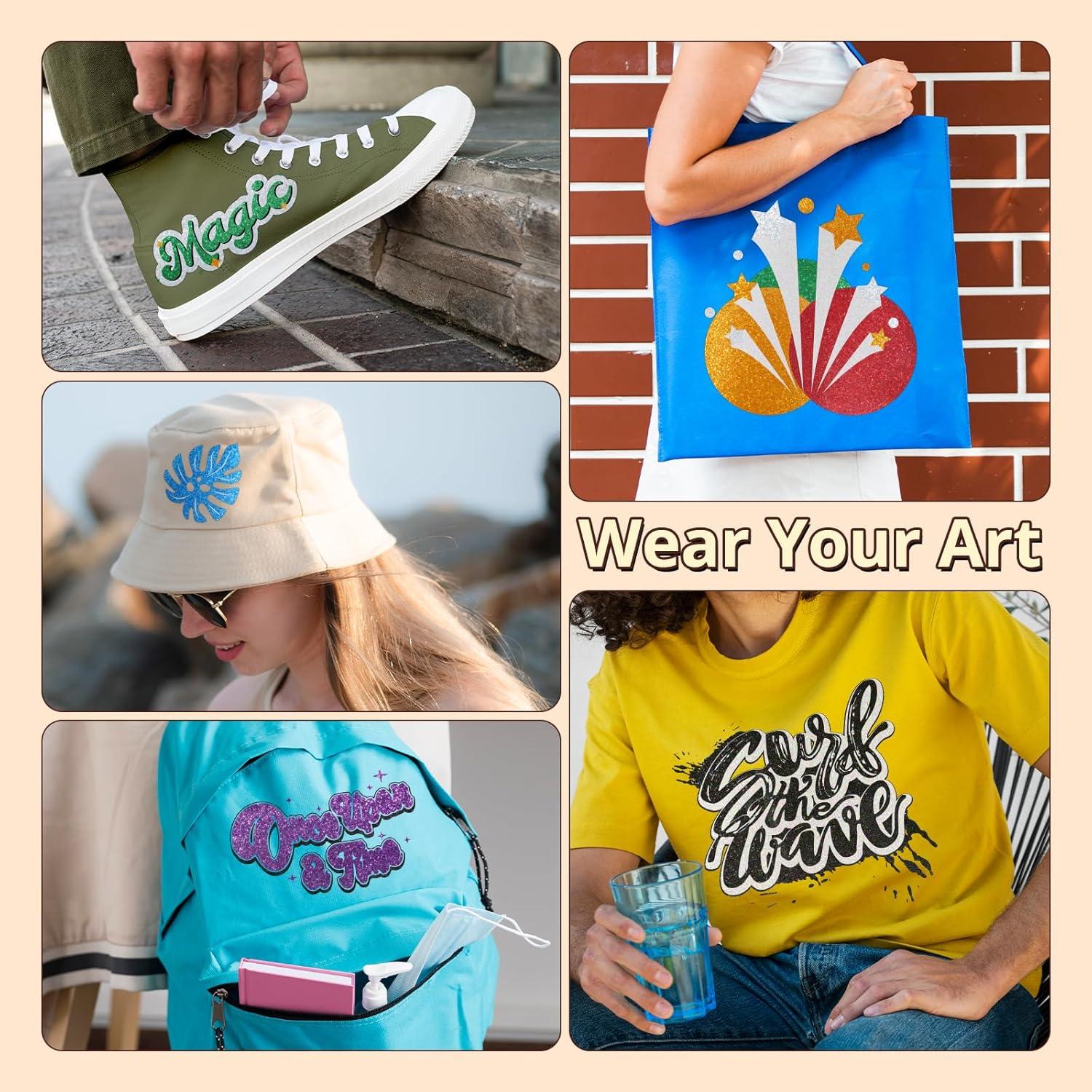 【Versatile for All Fabrics】Our glitter htv is great for sublimation and works perfectly on cotton, polyester, mesh, Lycra, and blended fabrics. Ideal for crafting custom t-shirts, activewear, shoes, decorative pillows, and more! Whether you're creating for birthdays, holidays, or personal fashion projects, our glitter iron on vinyl brings your creative visions to life with brilliant, long-lasting sparkle