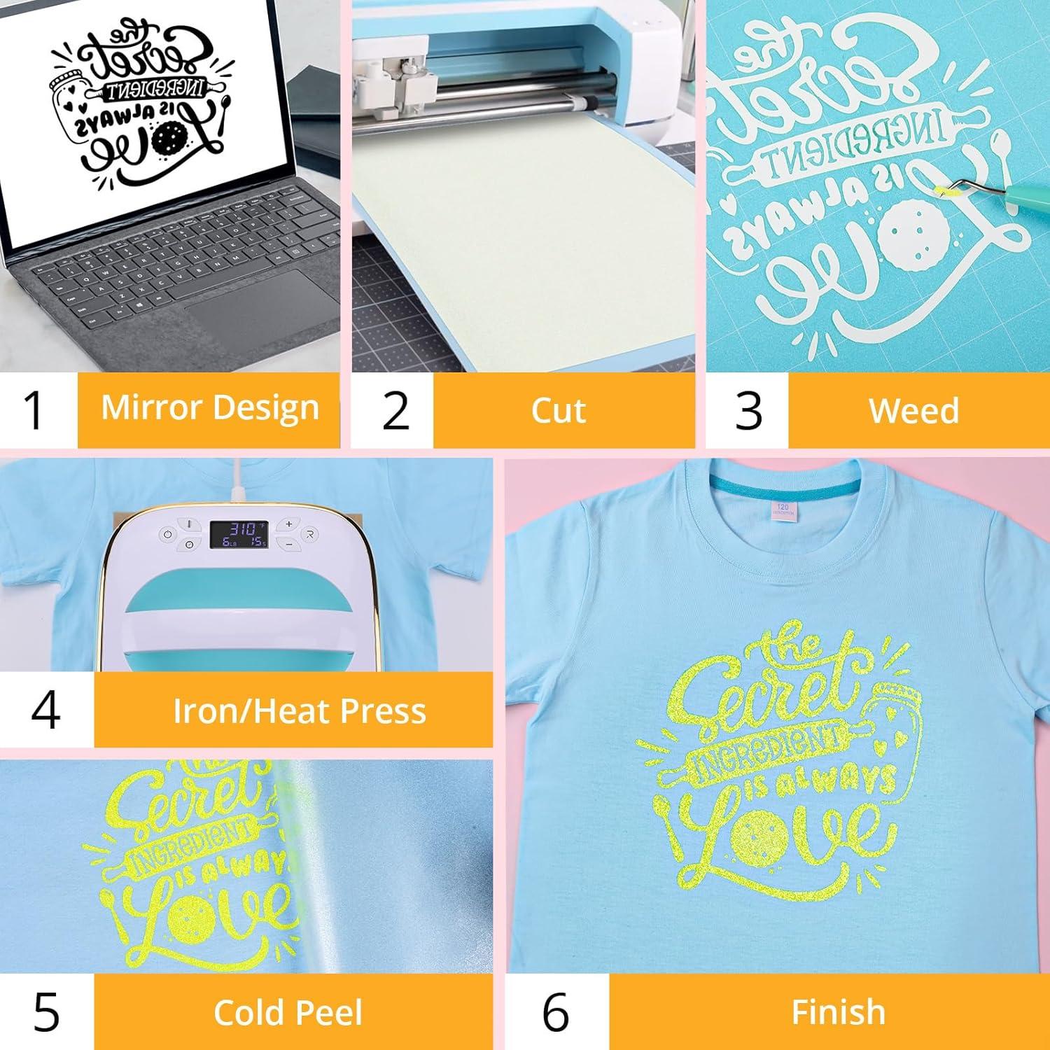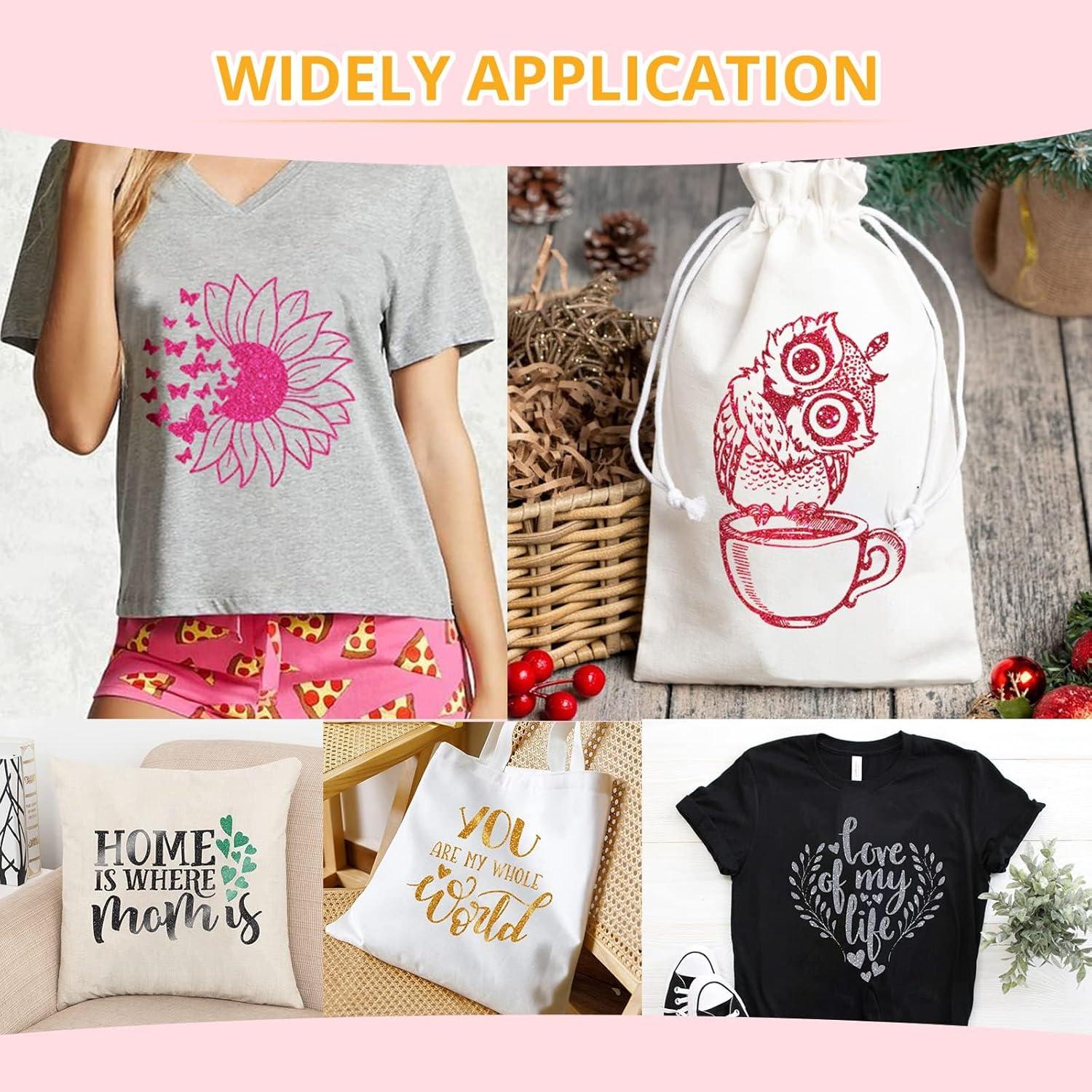 【Versatile for All Fabrics】Our glitter htv is great for sublimation and works perfectly on cotton, polyester, mesh, Lycra, and blended fabrics. Ideal for crafting custom t-shirts, activewear, shoes, decorative pillows, and more! Whether you're creating for birthdays, holidays, or personal fashion projects, our glitter iron on vinyl brings your creative visions to life with brilliant, long-lasting sparkle