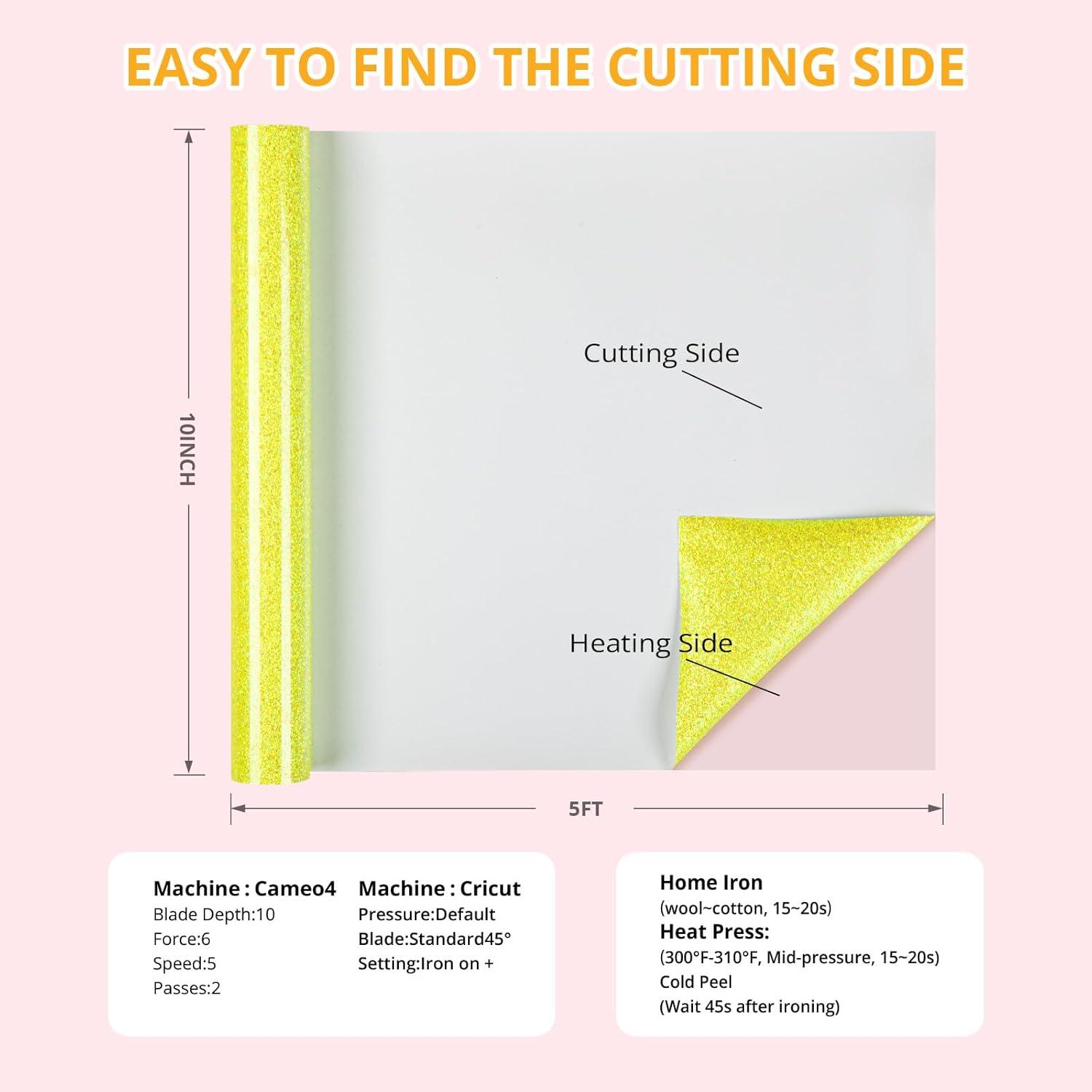 HTVRONT Purple White Glitter HTV Vinyl- 10” x 5ft Purple White Glitter Iron On Vinyl for All Cutting Machine, Glitter Heat Transfer Vinyl Roll for T Shirts – Easy to Cut & Weed for Heat Vinyl Design(Neon Lemon Yellow)