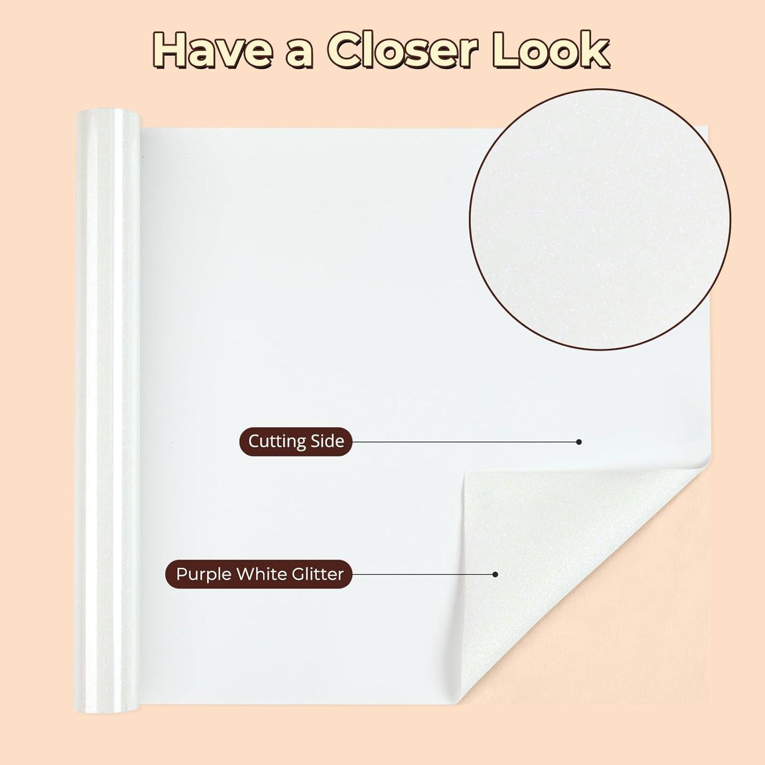 【Ultra-Sparkle Glitter HTV】Our purple white glitter htv delivers vibrant, eye-catching shimmer that outshines ordinary HTV. Perfect for custom apparel & crafts, our glitter iron-on vinyl features high-density fine glitter for a dazzling finish. Durable and long-lasting, it stays vibrant wash after wash. Ideal for crafting fashion, shirts, bags, and more