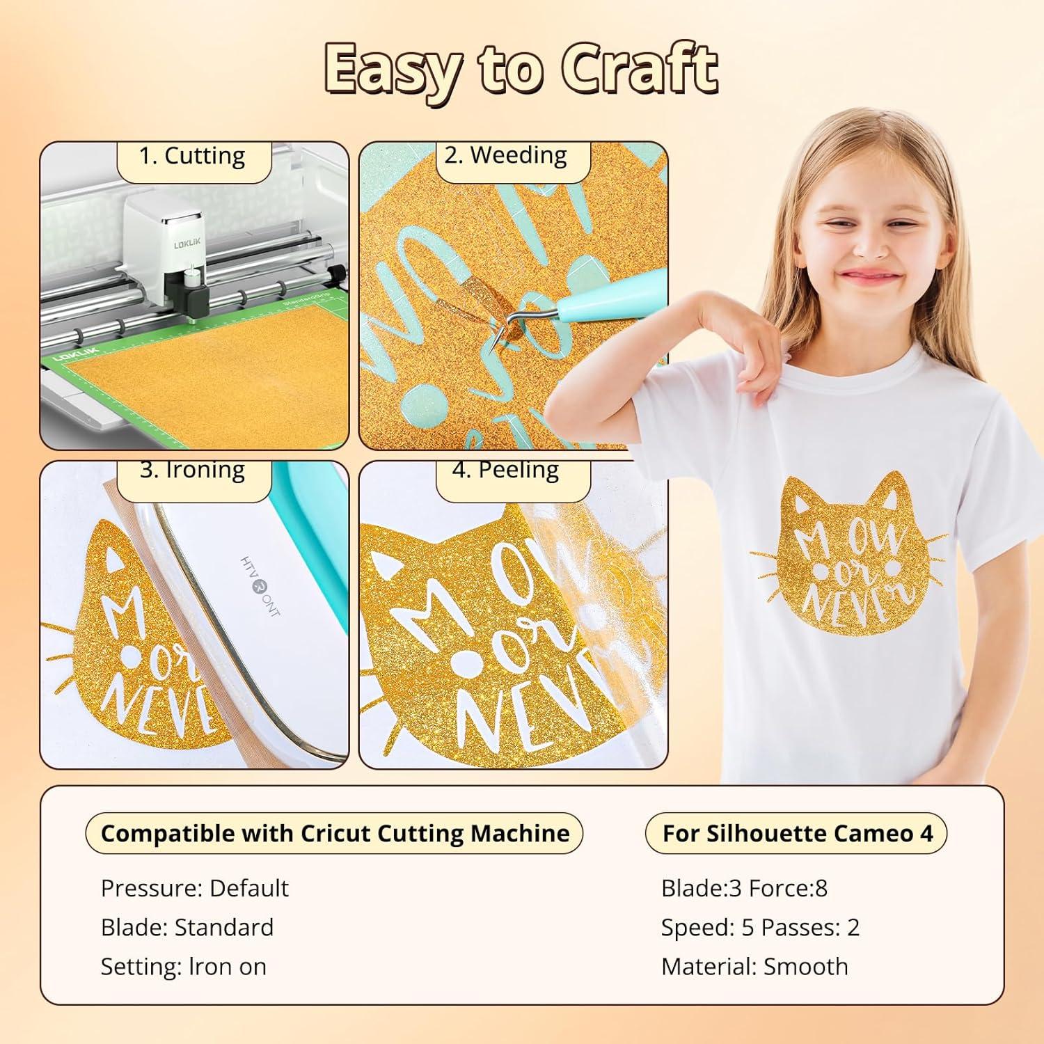 【Expert Craft Support】We stand behind every roll of HTVRONT glitter vinyl heat transfer with dedicated customer care. If our glitter heat transfer vinyl for t-shirts does not perform to your expectations, please feel free to contact us. We will make every effort to ensure your satisfaction. Plus, access our free online video tutorials and design tips to perfect your glitter htv craft