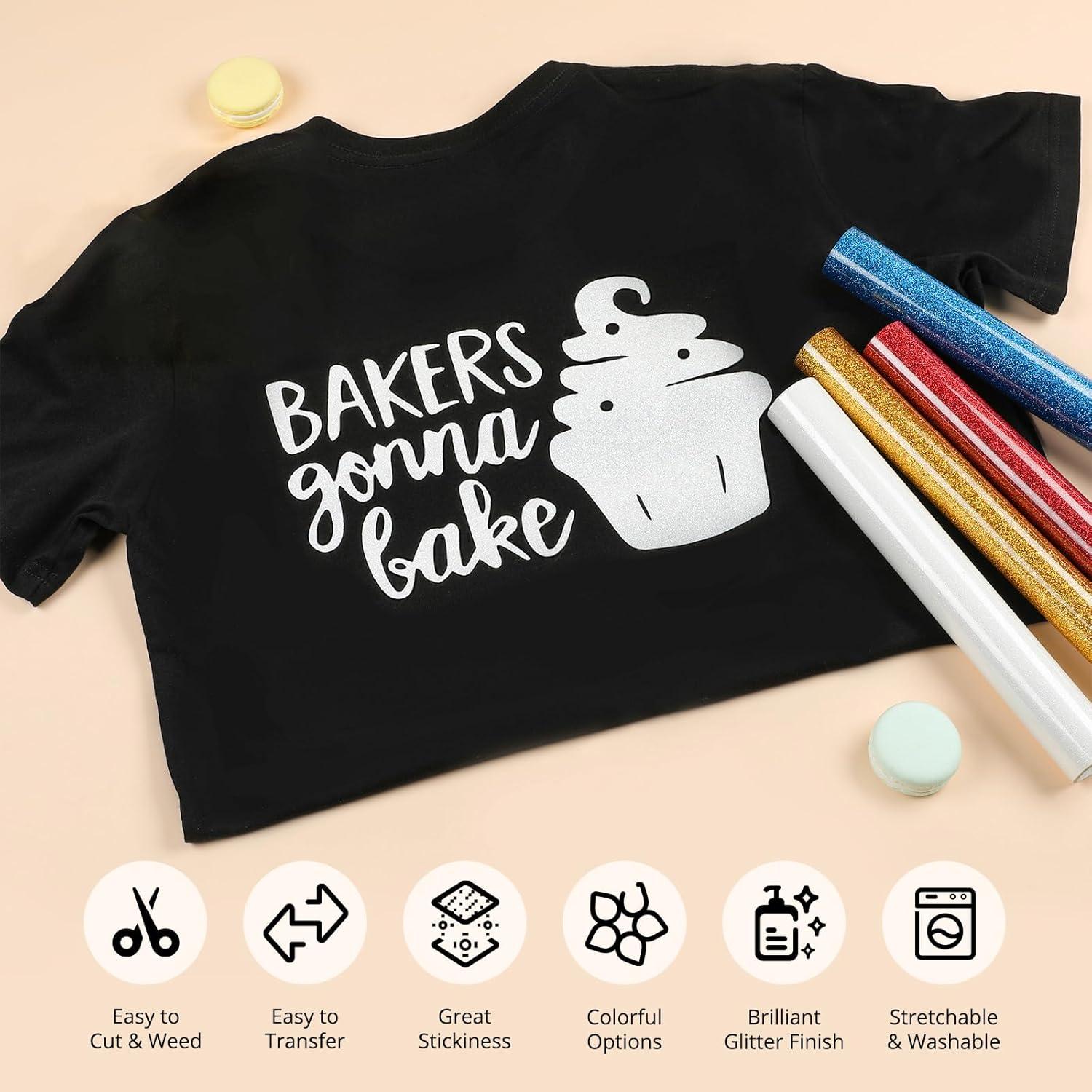 【Versatile for All Fabrics】Our glitter htv is great for sublimation and works perfectly on cotton, polyester, mesh, Lycra, and blended fabrics. Ideal for crafting custom t-shirts, activewear, shoes, decorative pillows, and more! Whether you're creating for birthdays, holidays, or personal fashion projects, our glitter iron on vinyl brings your creative visions to life with brilliant, long-lasting sparkle