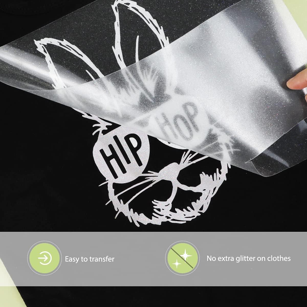【SUPER EASY TO TRANSFER】The glitter vinyl iron on heat transfer is pressure-sensitive. You can use a household iron or heat press to transfer it easily. The glitter can be completely transferred to the clothes without melting. Except for the graphics, there is no extra glitter on the clothes. You will GET A GREAT RESULT.