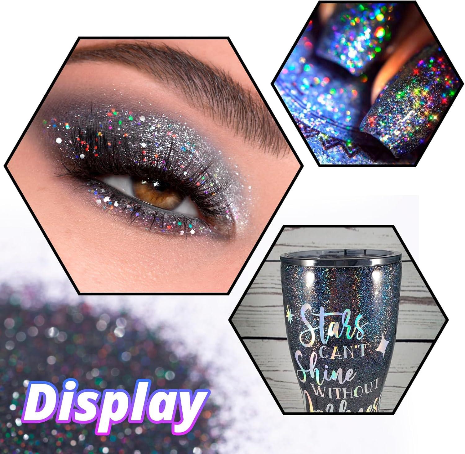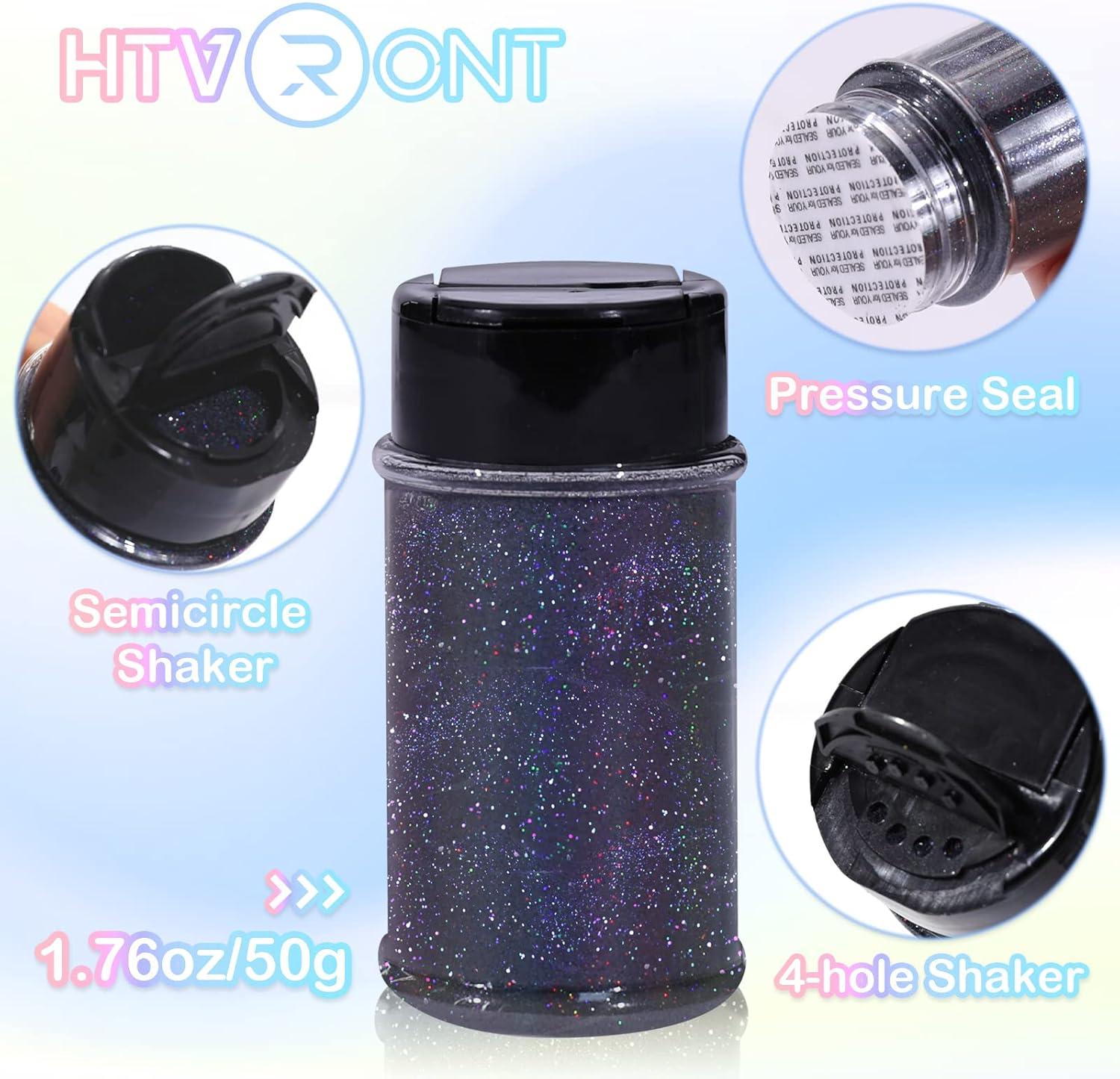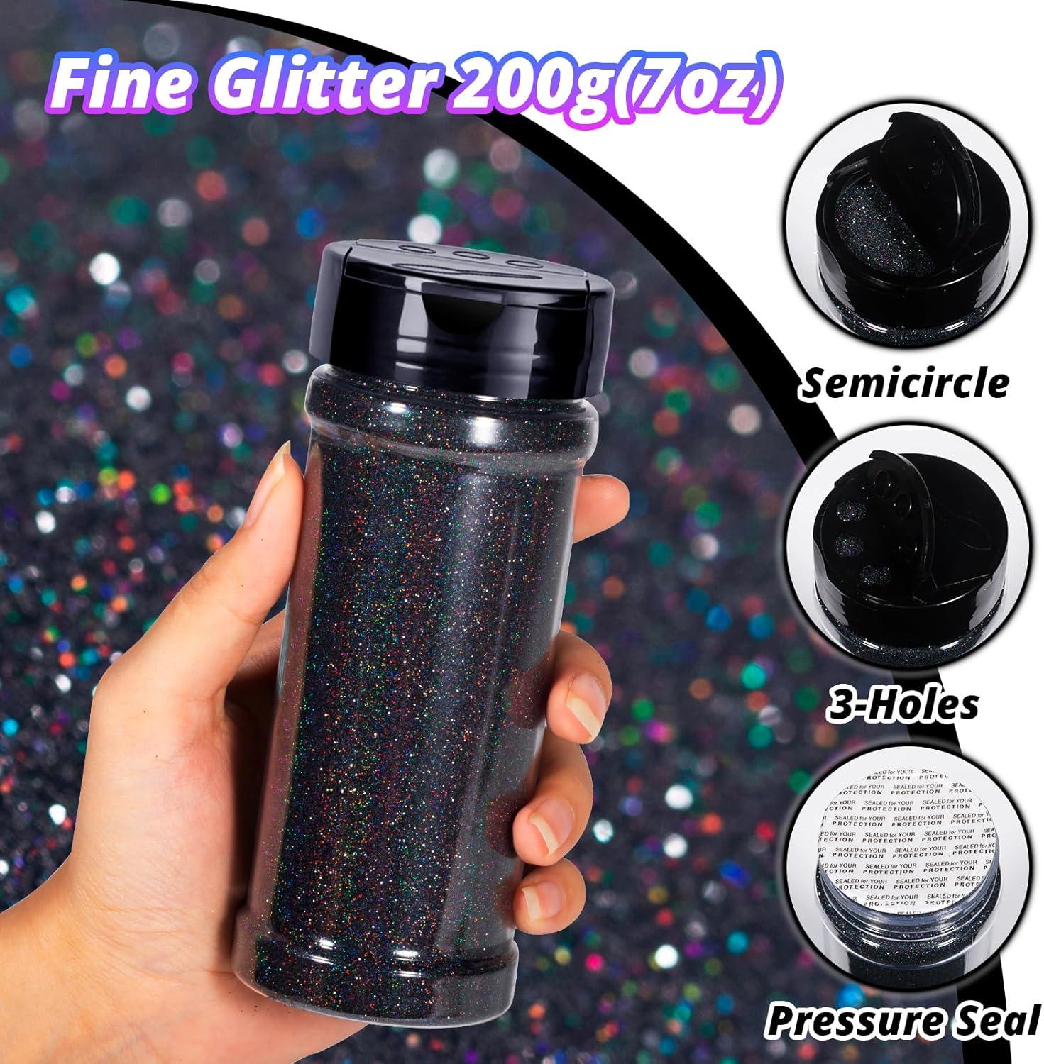 HTVRONT Red Glitter Fine Glitter - 50g/1.76oz Extra Fine Glitter for Crafts, 1/128 Portable Resin Glitter for Nails, Tumblers, Ornaments(A-Holographic Black)