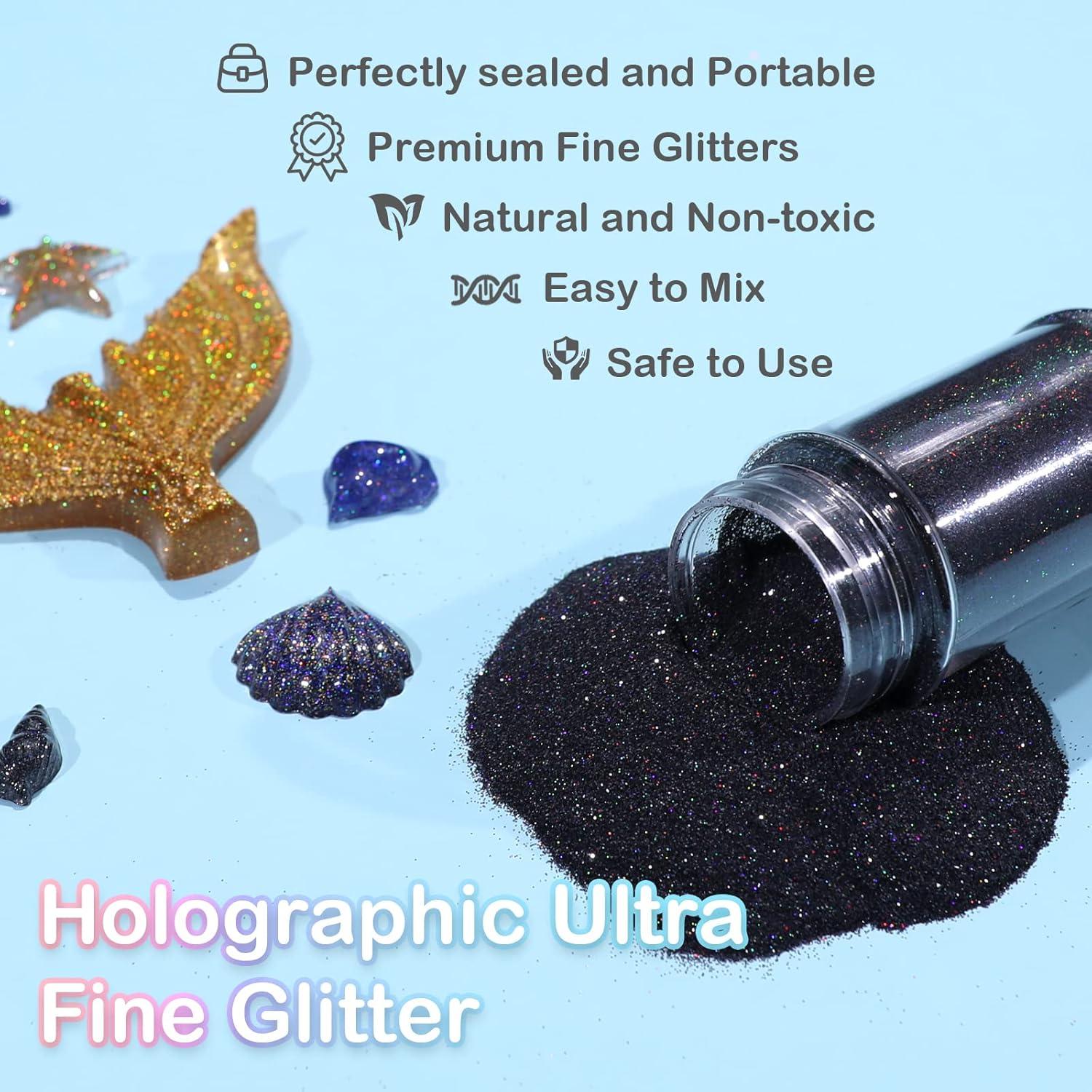 VIBRANT & RICH COLORS. This fine glitter for resin displays a stunning visual effect, flashing sparkles and colors reflecting in the dust. This glitter powder includes white glitter, black glitter, gold glitter, blue glitter, purple glitter, pink glitter, silver glitter, rose gold glitter, green glitter and red glitter that can meet most of your needs. Its glittery luster embellishes your projects with charm and beauty, which helps make you stand out in the crowd