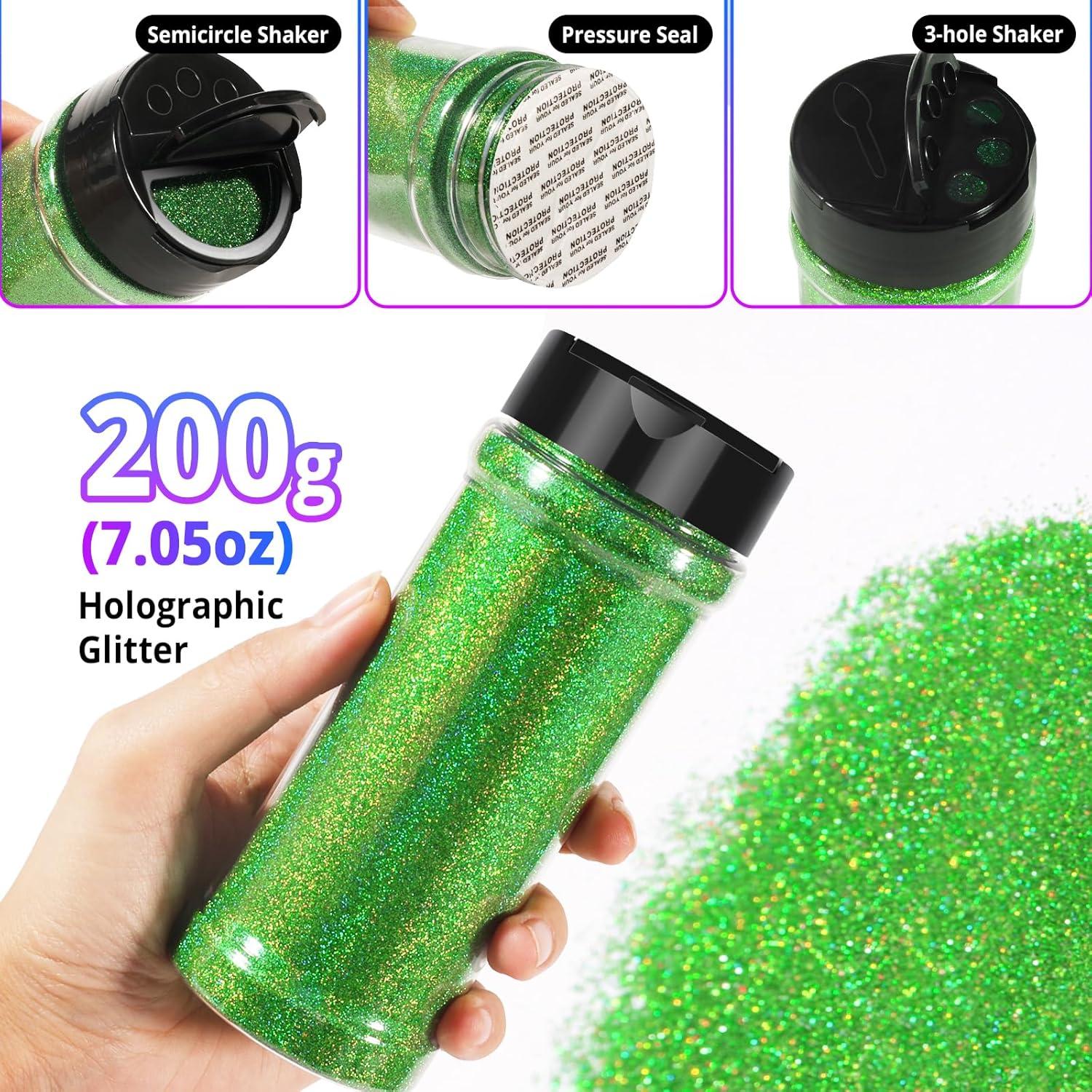 HTVRONT Red Glitter Fine Glitter - 50g/1.76oz Extra Fine Glitter for Crafts, 1/128 Portable Resin Glitter for Nails, Tumblers, Ornaments(A-Holographic Green)