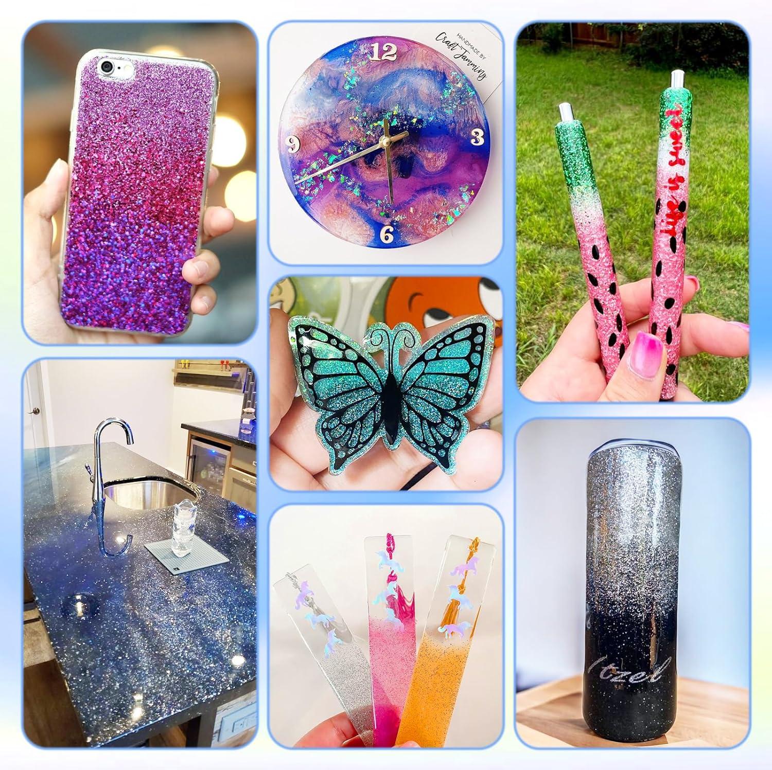 VIBRANT & RICH COLORS. This fine glitter for resin displays a stunning visual effect, flashing sparkles and colors reflecting in the dust. This glitter powder includes white glitter, black glitter, gold glitter, blue glitter, purple glitter, pink glitter, silver glitter, rose gold glitter, green glitter and red glitter that can meet most of your needs. Its glittery luster embellishes your projects with charm and beauty, which helps make you stand out in the crowd