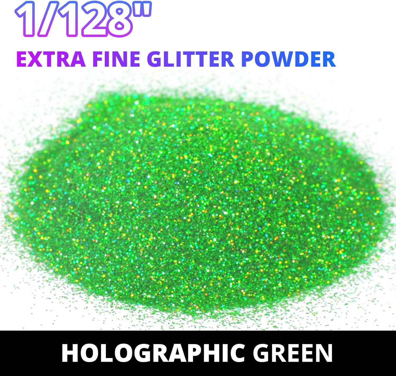 HTVRONT Red Glitter Fine Glitter – 50g/1.76oz Extra Fine Glitter for Crafts, 1/128 Portable Resin Glitter for Nails, Tumblers, Ornaments(A-Holographic Green)