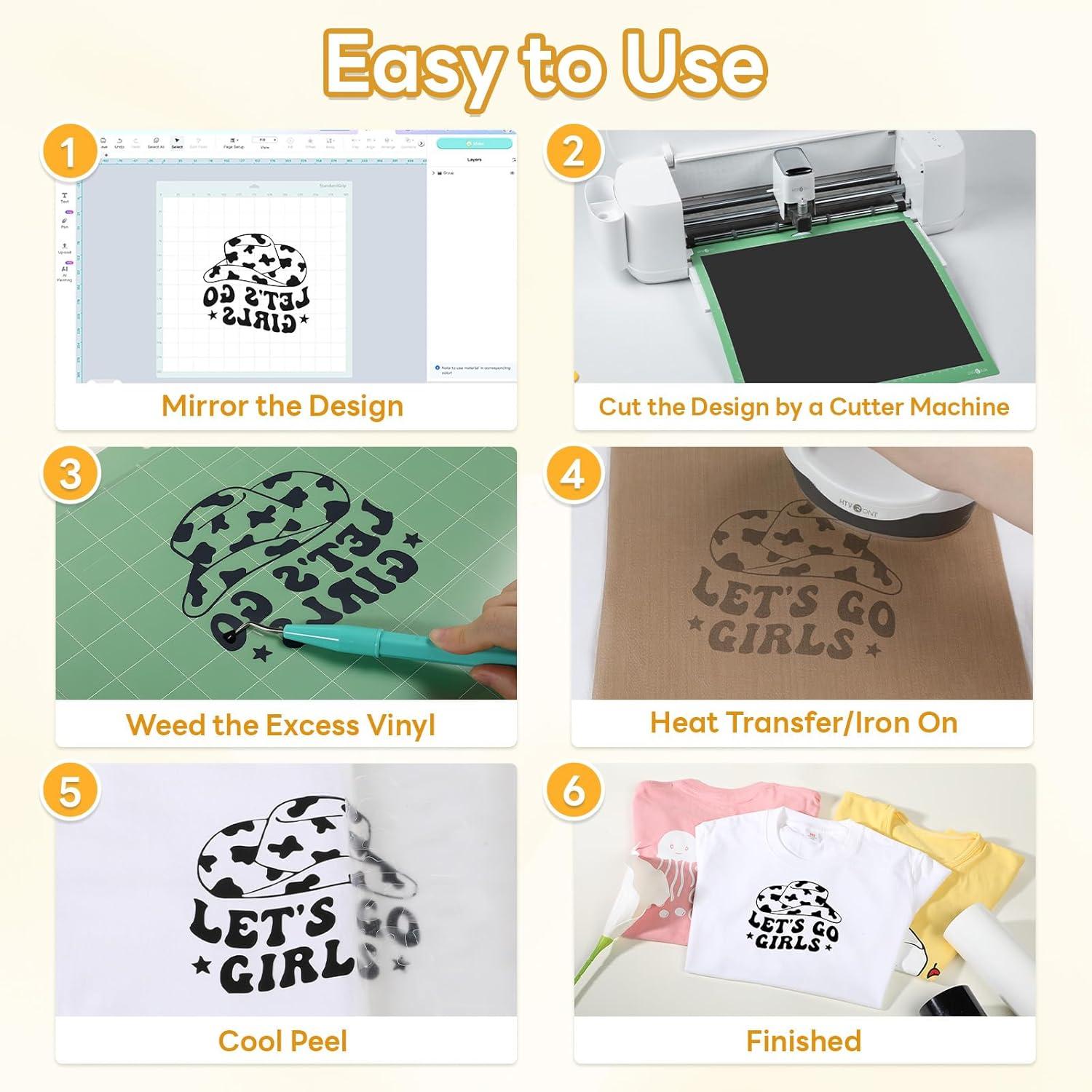 【Easy to Cut & Weed & Transfer】Our HTVRONT glitter htv is thicker and smooth. With its good cutting application characteristics, you can get your designs to perfection without wasting excess glitter heat transfer vinyl. At the same time, our glitter iron on vinyl is very sensitive to temperature and pressure, just follow the instructions and you can easily transfer the vinyl to the fabric.