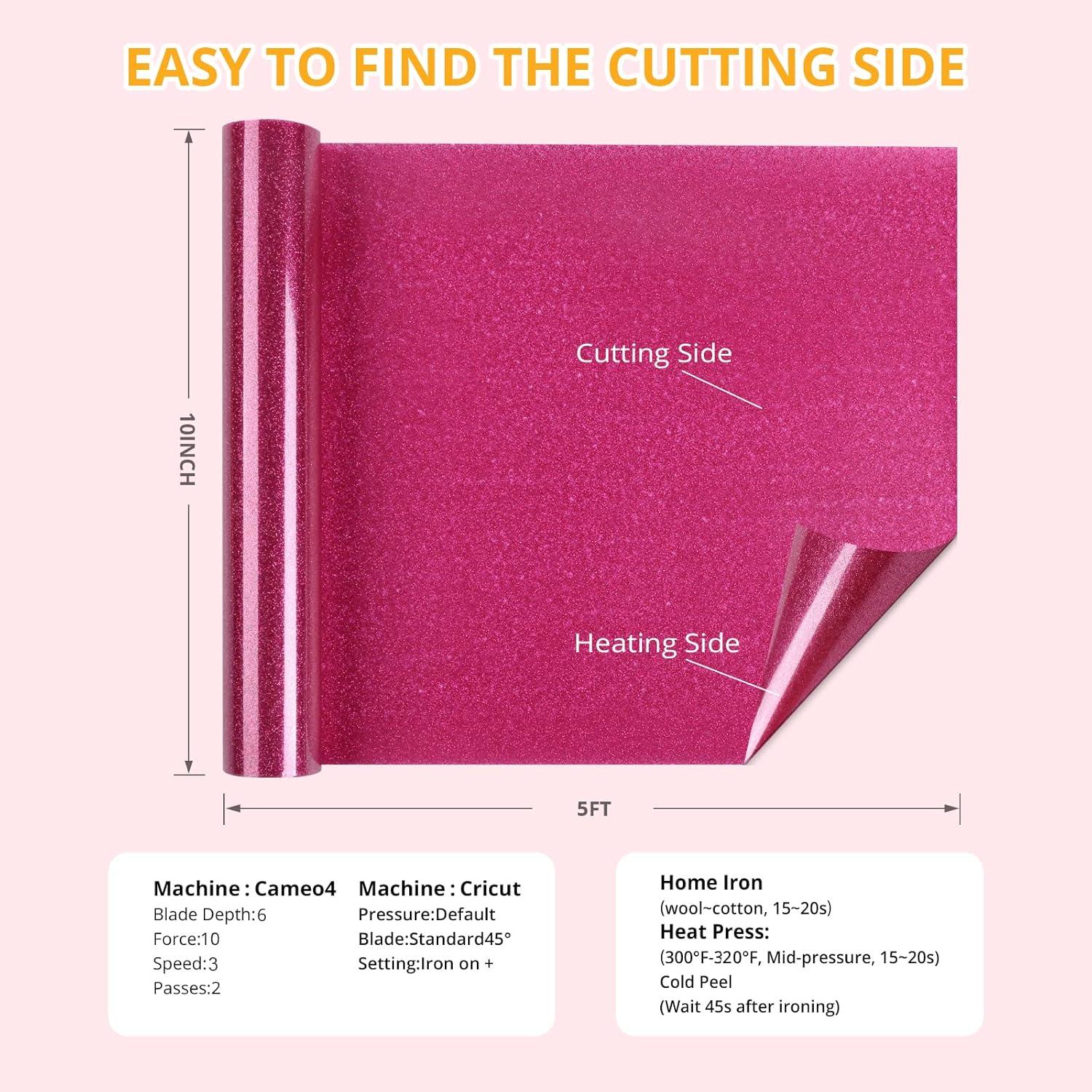 【Easy to Cut & Weed & Transfer】Our HTVRONT glitter htv is thicker and smooth. With its good cutting application characteristics, you can get your designs to perfection without wasting excess glitter heat transfer vinyl. At the same time, our glitter iron on vinyl is very sensitive to temperature and pressure, just follow the instructions and you can easily transfer the vinyl to the fabric.