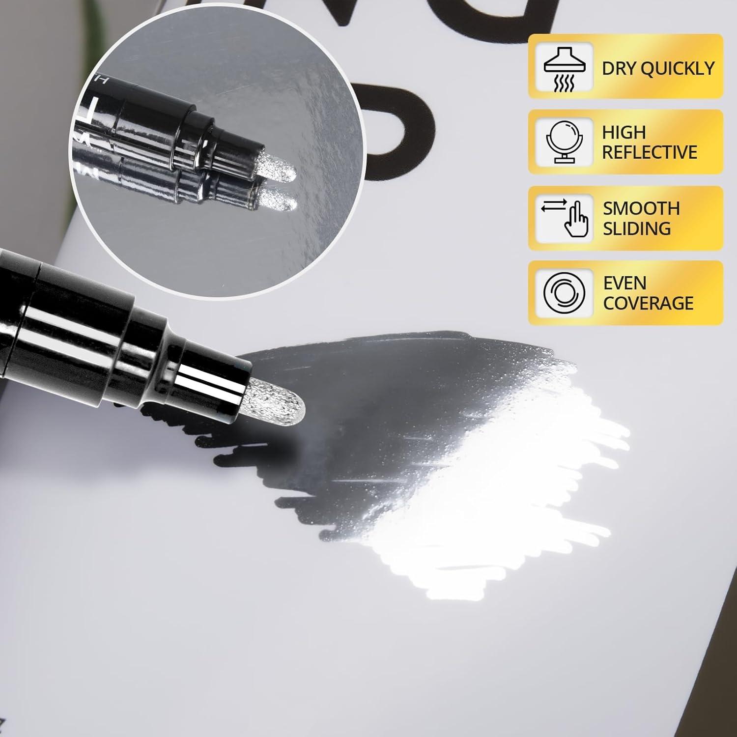【Great Coverage】The ink of silver paint marker has the advantages of being highly covering opaque, long-lasting, waterproof, fade-resistant, anti-ultraviolet oxidation. There is no doubt that gold paint pens are great for indoor and outdoor drawing