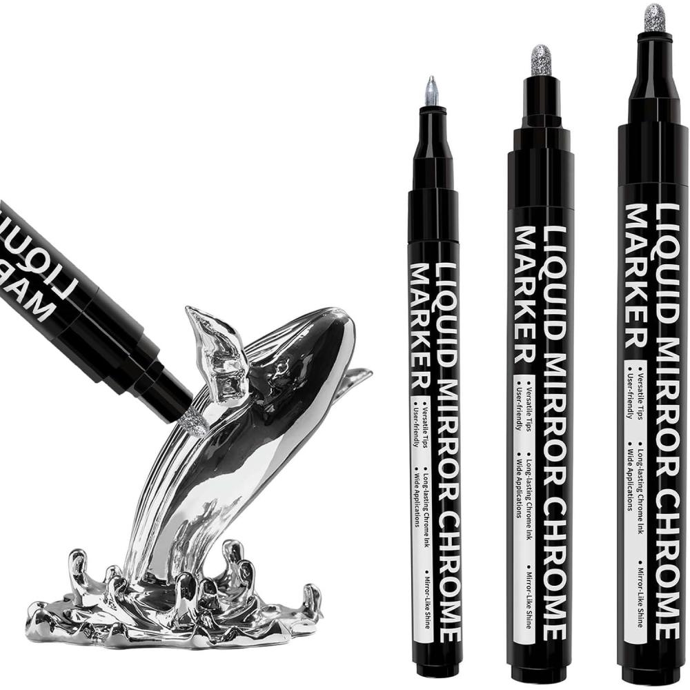 【Wide Application】HTVRONT silver metallic marker pen apply to smooth surfaces for a mirror-like effect, such as plastic, glass, stone, ceramic, paper, canvas, plastic material, or stone