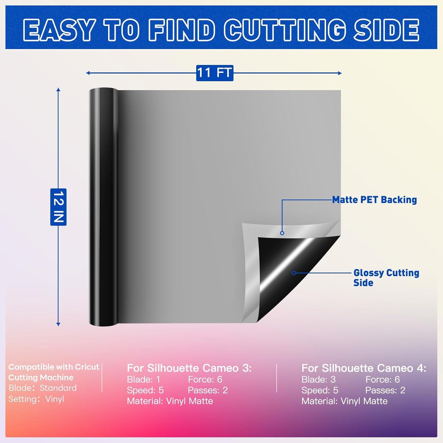 HTVRONT Silver Permanent Vinyl, 12" x 11 FT Silver Permanent Adhesive Vinyl Roll Compatible with Cricut Cutting Machine, Silhouette, Cameo, Signs, Scrapbooking, Craft, Die Cutters(Glossy Black)