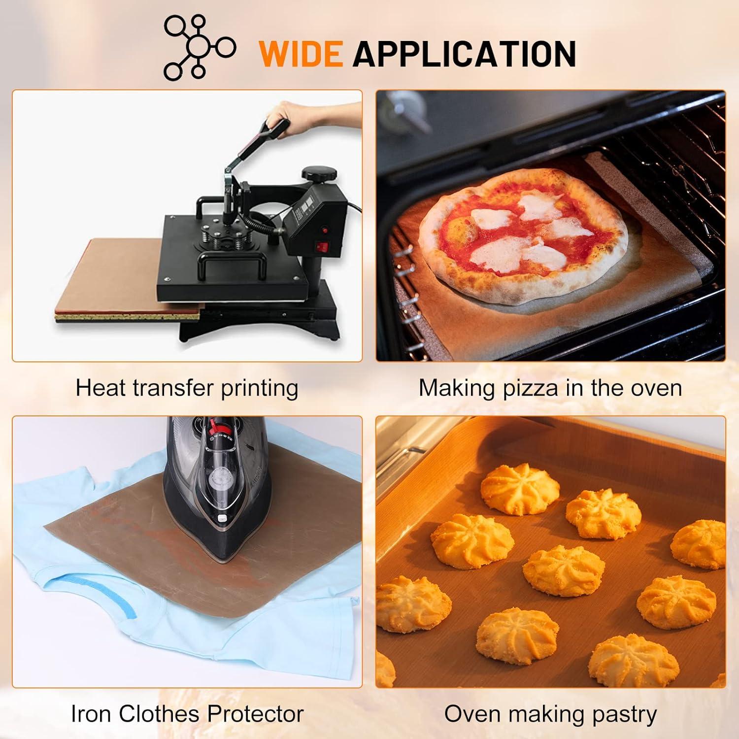 MULTI-PURPOSE CRAFT ITEM: The teflon sheets can be non-stick oven liners, iron clothes protector, heat press transfers, ironing board. You can bake, roast, press, fuse, iron, applique press, paint with teflon paper for heat press. The teflon sheets for heat press can work well in sublimation, 3D printing, masking, welding, packing fixing, PCB, electronic repair and other DIY projects