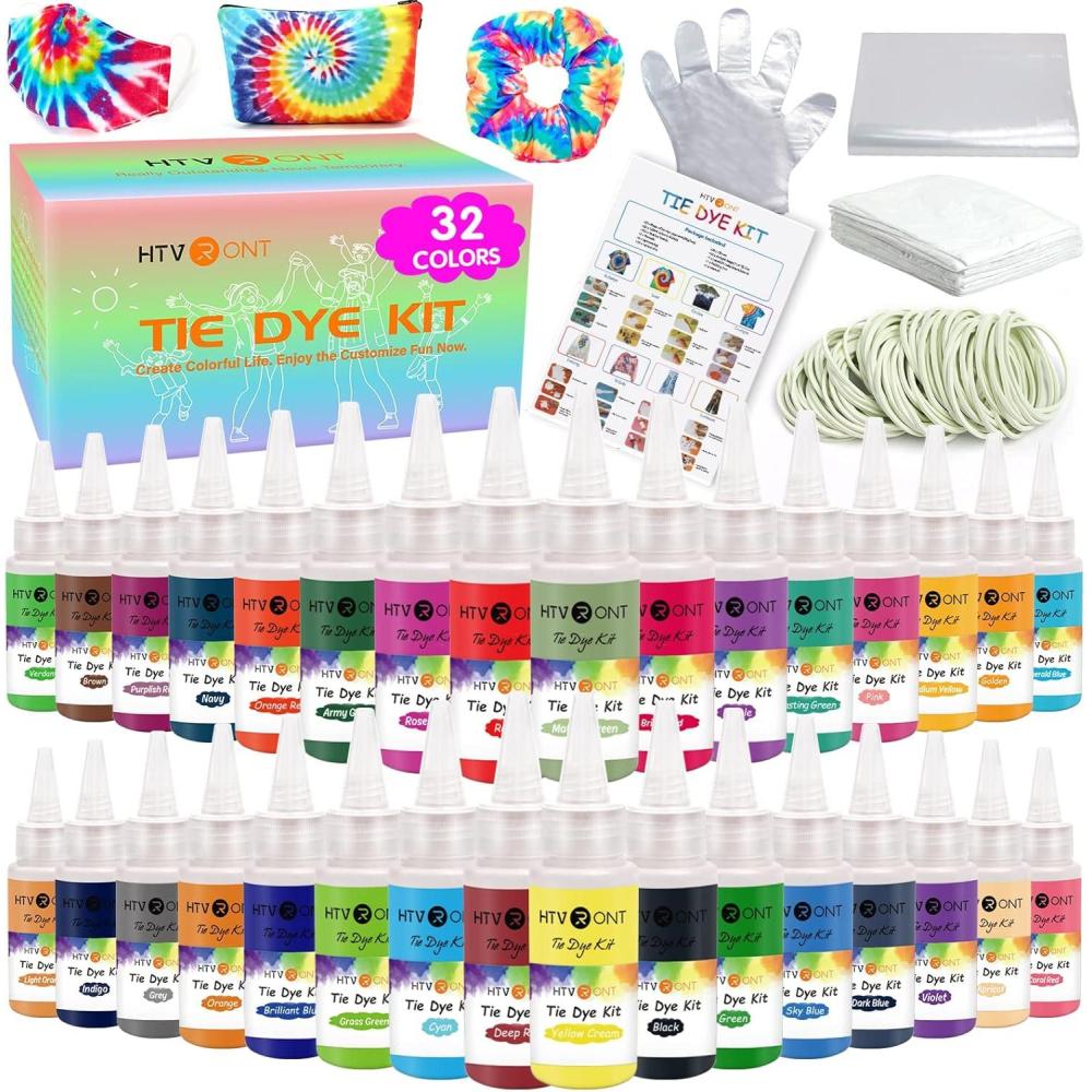 HTVRONT Tie Dye Kit for Kids and Adults - 18 Colors 80ML Pre-Filled Bottles Permanent Non-Toxic Tye Dye Kits for Clothing T-Shirt Fabric Textile Craft Party Handmade Project(Just Add Water)(A - 32 Colors with 60ml Bottles)