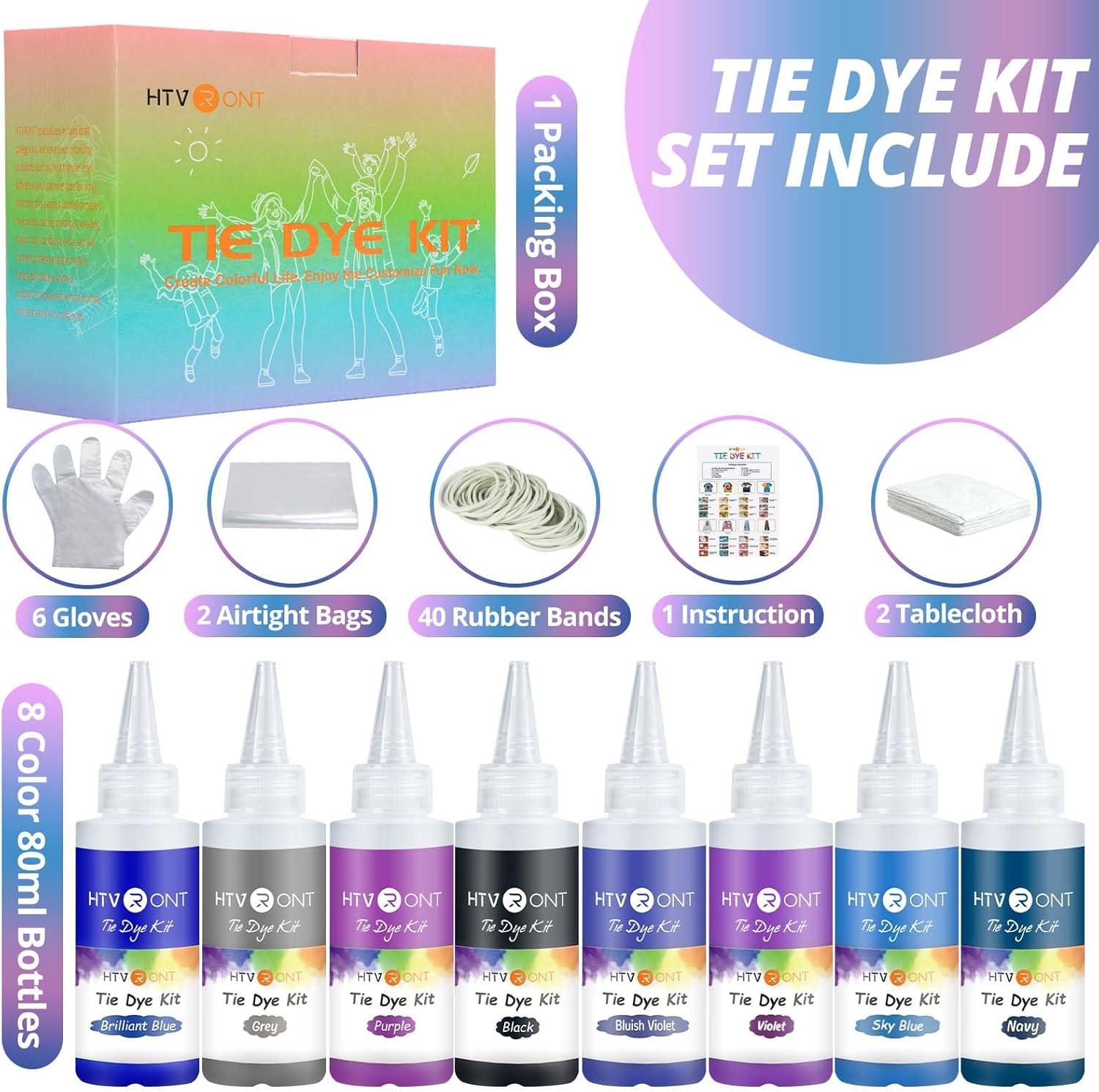 HTVRONT Tie Dye Kit for Kids and Adults - 18 Colors 80ML Pre-Filled Bottles Permanent Non-Toxic Tye Dye Kits for Clothing T-Shirt Fabric Textile Craft Party Handmade Project(Just Add Water)(E - 8 Galaxy Colors)