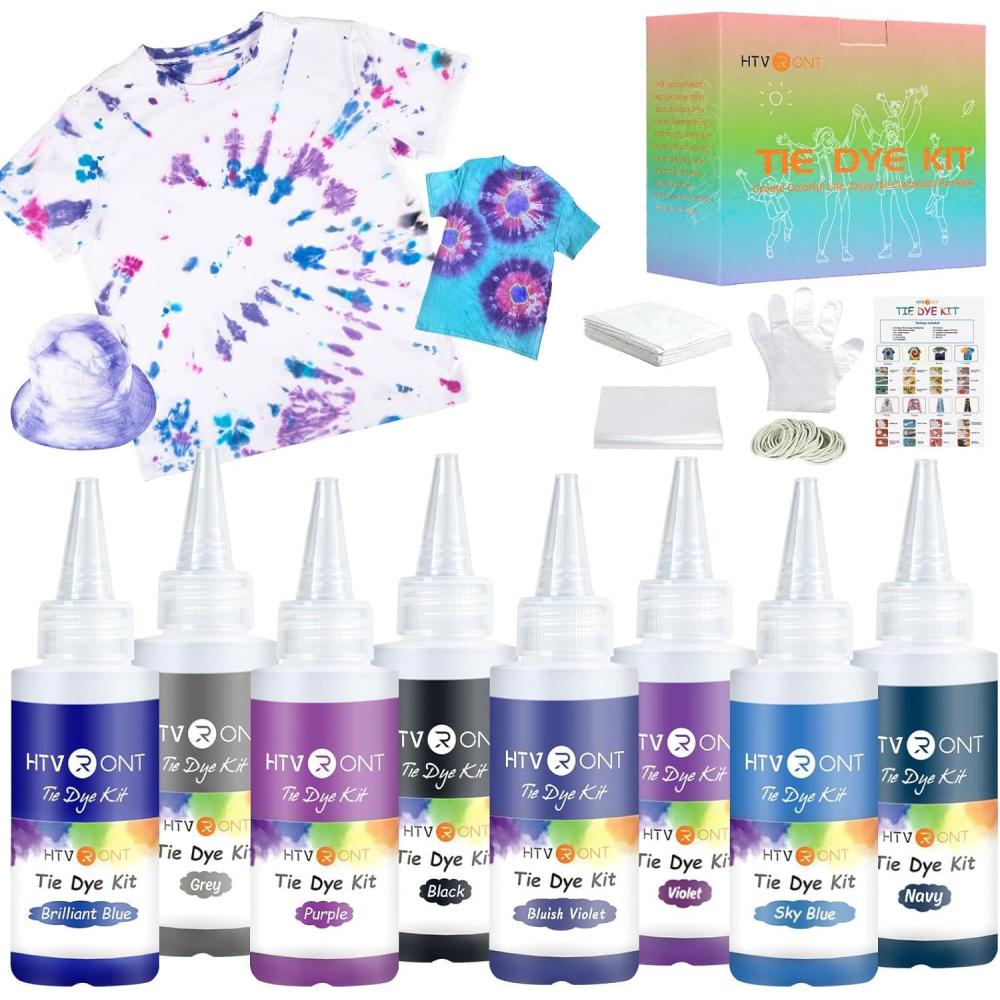 HTVRONT Tie Dye Kit for Kids and Adults – 18 Colors 80ML Pre-Filled Bottles Permanent Non-Toxic Tye Dye Kits for Clothing T-Shirt Fabric Textile Craft Party Handmade Project(Just Add Water)(E – 8 Galaxy Colors)