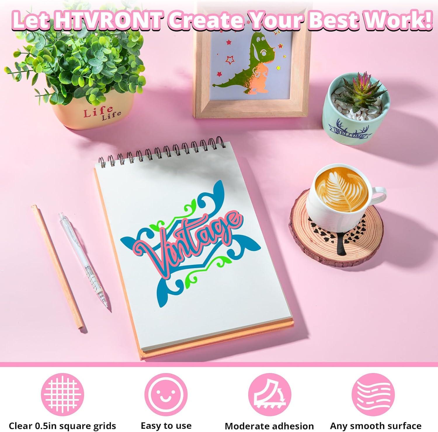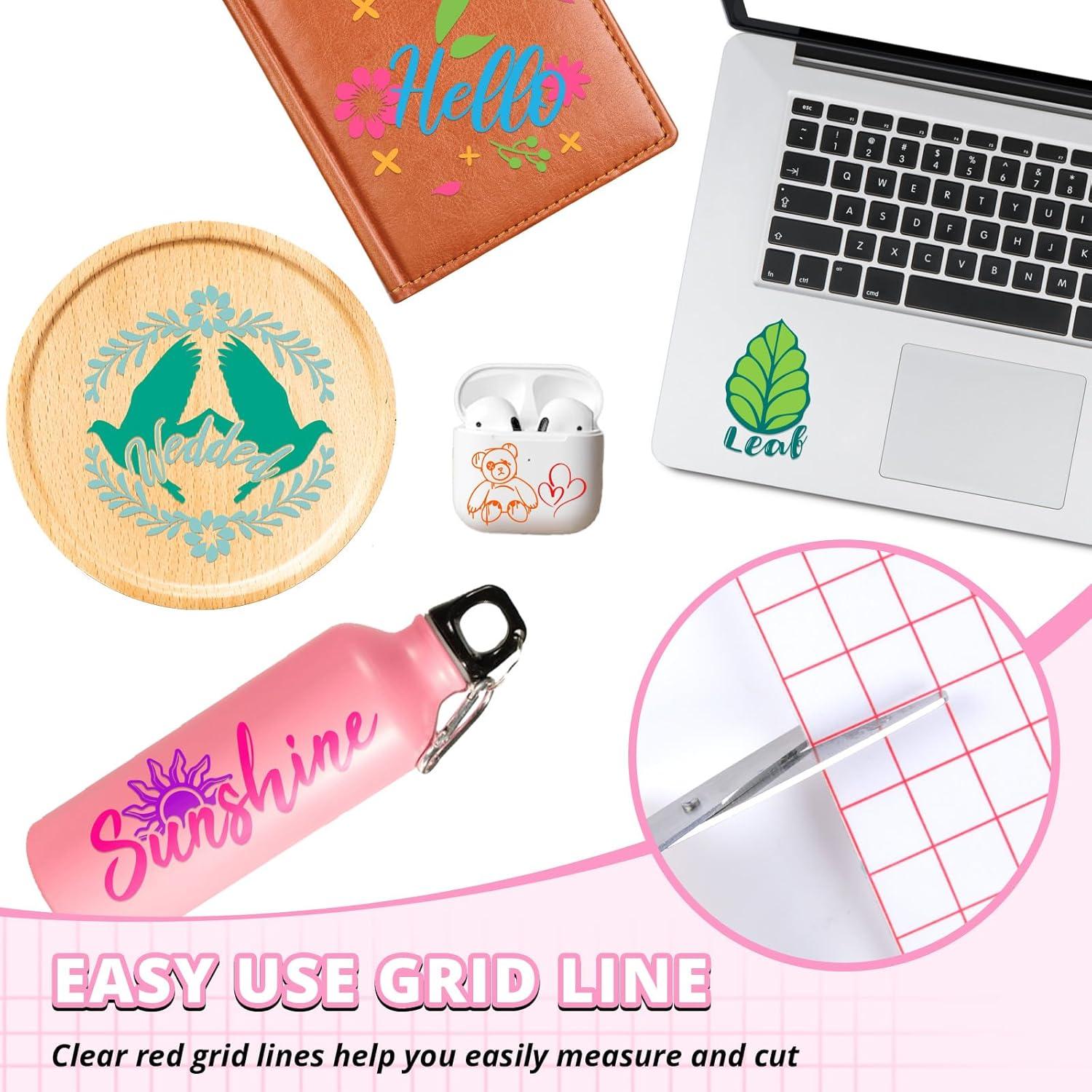 【CLEAR GRID & EASY TO MEASURE】 Clear red alignment grid lines make transfer paper for vinyl easy to measure and cut without waste. Our alignment grid vinyl transfer paper is clearer than others, it helps a lot with small craft design. Make your craft design more precise and refined.