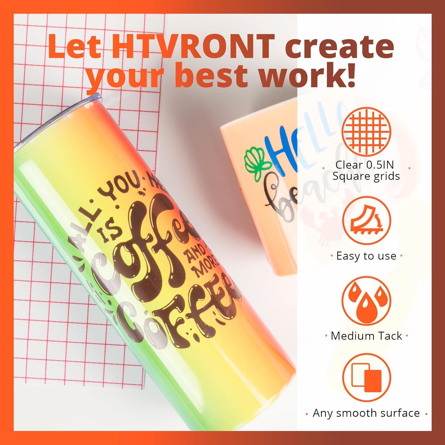 HTVRONT Transfer Tape for Vinyl – 12″ x 30 Feet Clear w/Red Alignment Grid Medium Tack Vinyl Transfer Tape Perfect for Cameo Self Adhesive Vinyl for Signs Stickers Decals Walls Doors & Window(06in x 50ft)