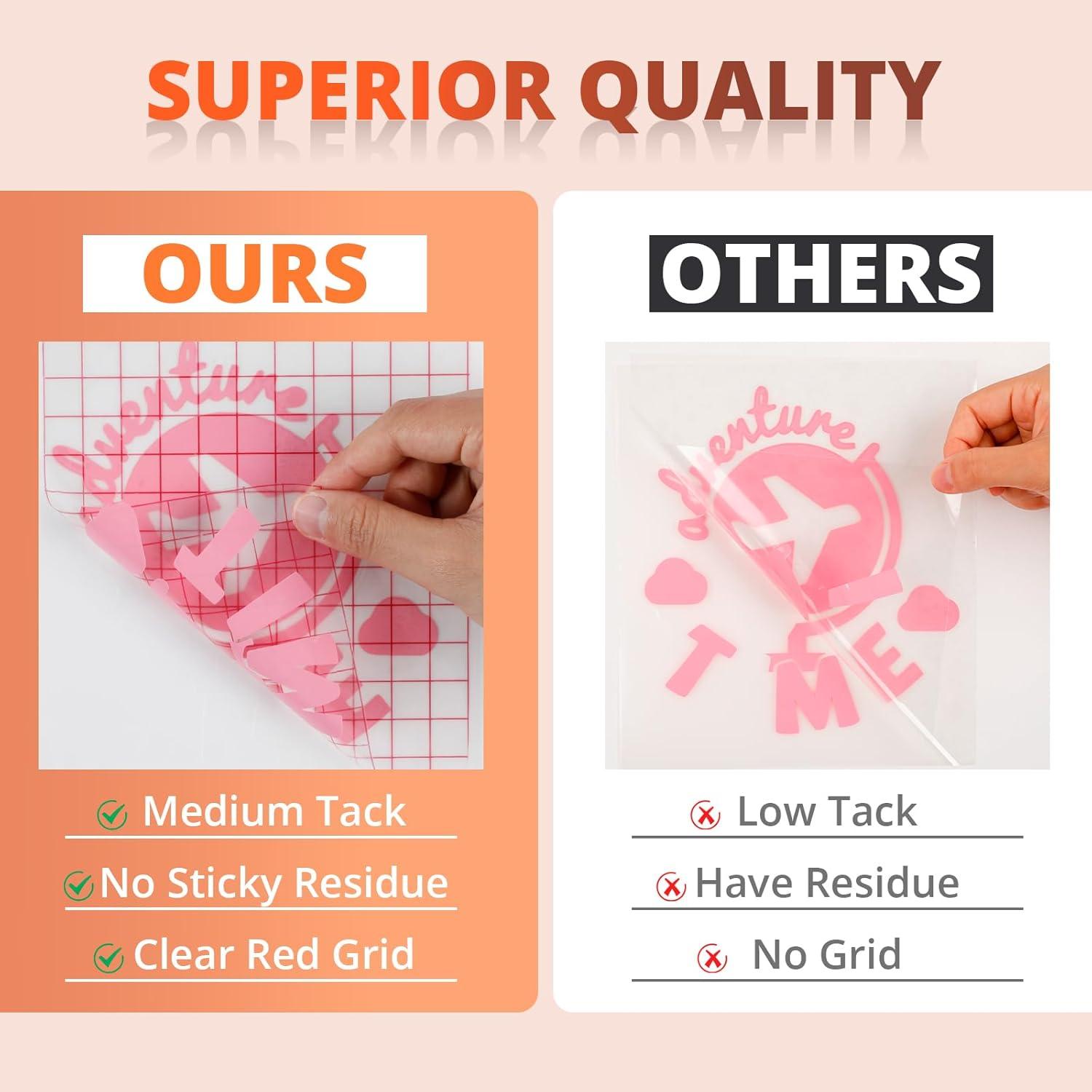 MORE PRECISE-CLEAR RED GRID: Our clear transfer paper tape, unlike ordinary transfer paper for vinyl, comes with 1/2” see through square red grid alignment, making your project easy to see when transferring. The grid allows you to place vinyl exactly as intended, especially for small works to provide more accurate positioning