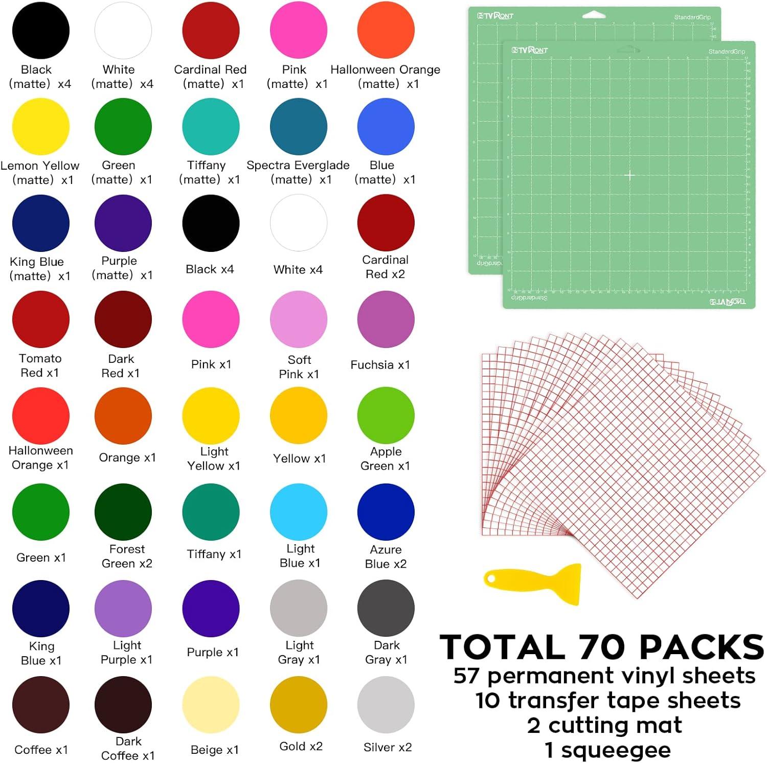 HTVRONT White Permanent Vinyl, 12 Pack Glossy White Vinyl for Cutting Machine – 10 Permanent Sheets 12″ x 12″& 2 Transfer Tape Sheets for Party Decoration, Sticker, Craft Cutter, Car Decal (Glossy)(70 Multicolored)