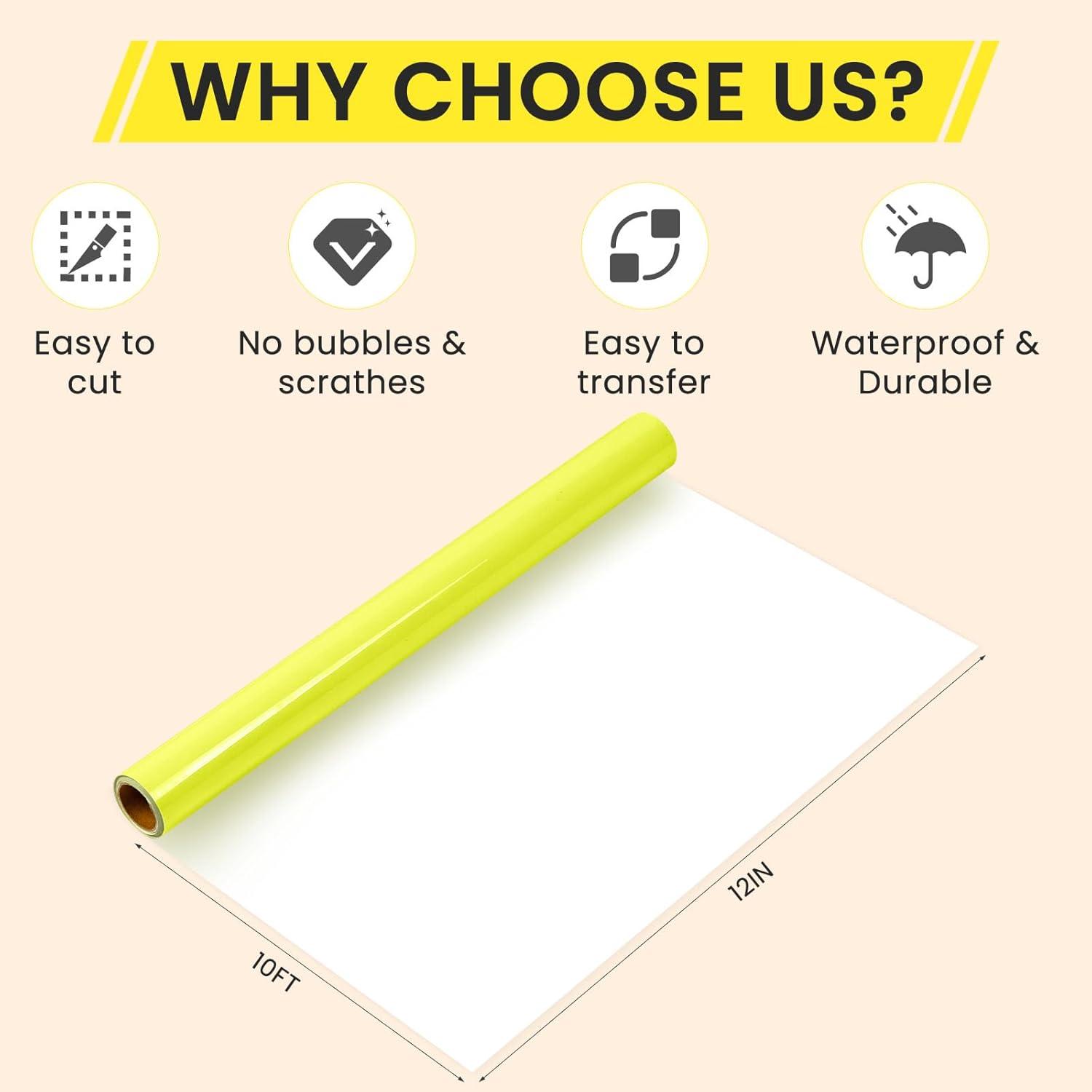 HTVRONT White Permanent Vinyl, 12" x 14 FT Adhesive White Vinyl Roll Compatible with Cricut Cutting Machine, Silhouette, Cameo Cutters, Signs, Scrapbooking, Craft, Die Cutters (Glossy)(Light Yellow to Green)
