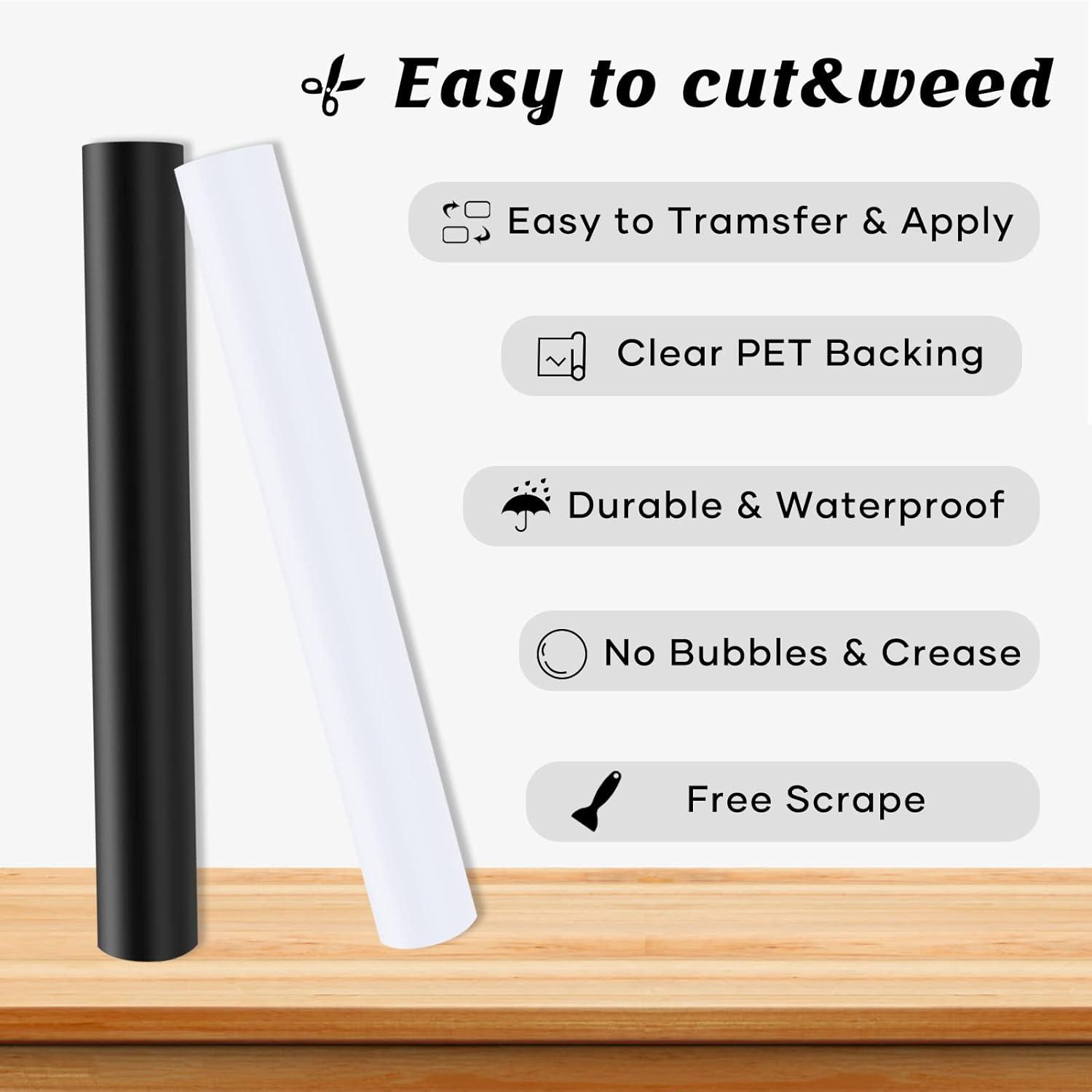 HTVRONT White Permanent Vinyl, 12" x 14 FT Adhesive White Vinyl Roll Compatible with Cricut Cutting Machine, Silhouette, Cameo Cutters, Signs, Scrapbooking, Craft, Die Cutters (Glossy)(Matte Black&white)