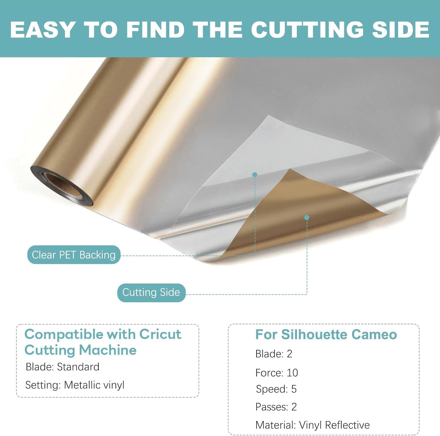 HTVRONT White Permanent Vinyl, 12" x 14 FT Adhesive White Vinyl Roll Compatible with Cricut Cutting Machine, Silhouette, Cameo Cutters, Signs, Scrapbooking, Craft, Die Cutters (Glossy)(Matte Metallic Champagne Gold)