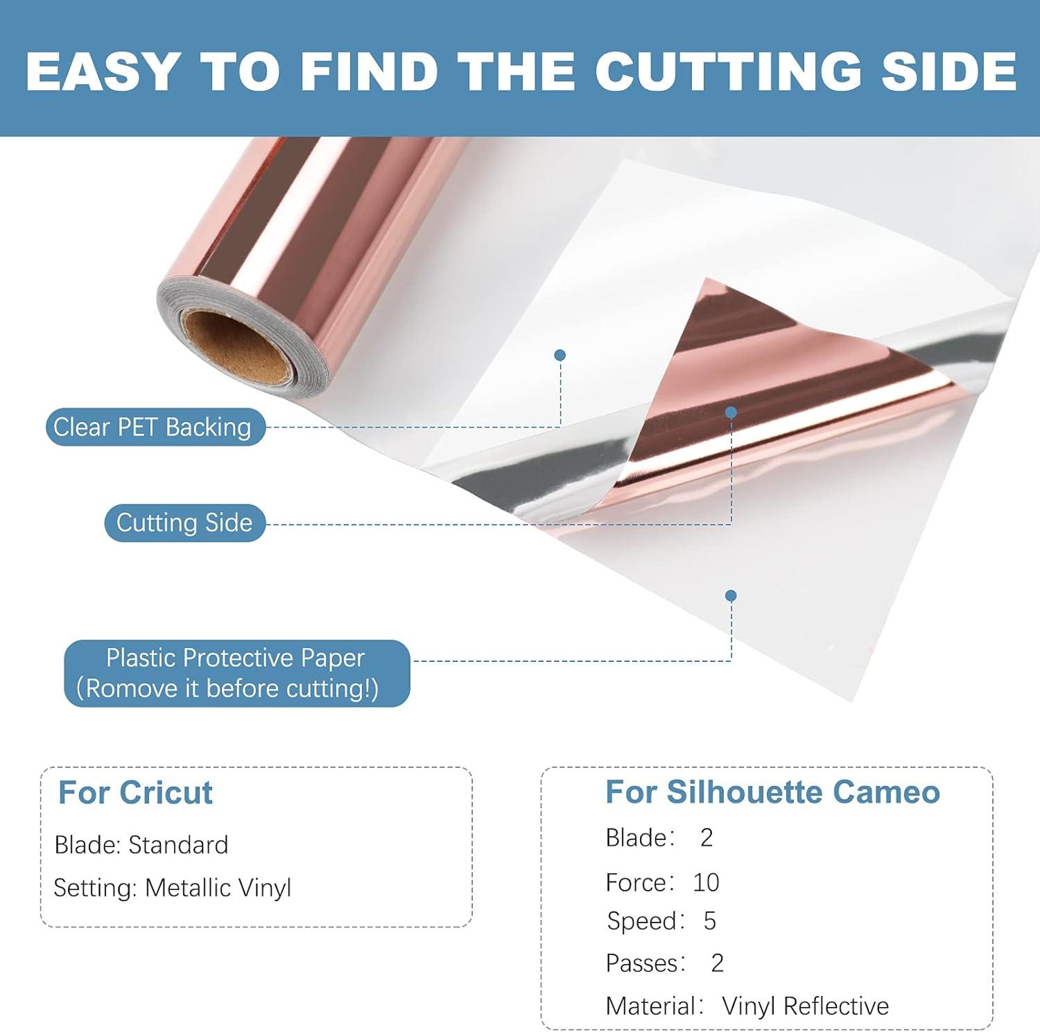 HTVRONT White Permanent Vinyl, 12" x 14 FT Adhesive White Vinyl Roll Compatible with Cricut Cutting Machine, Silhouette, Cameo Cutters, Signs, Scrapbooking, Craft, Die Cutters (Glossy)(Metallic Rose Gold)