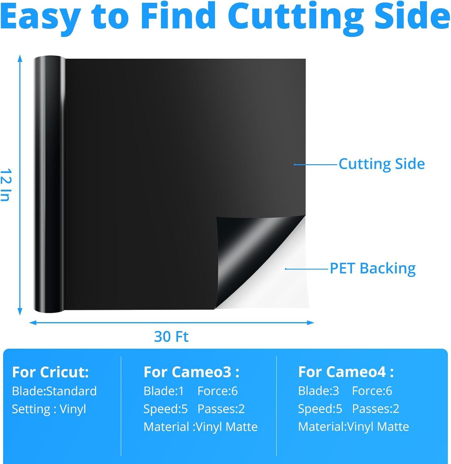 LARGER SIZE & HIGH EFFICIENCY: This adhesive vinyl features a clear PET backing, allowing you to say goodbye to paper backings prevent ruining your creations, and increase your weeding efficiency by 80%! The lengths 12x 30FT with higher cost performance are perfect for professional craftsmen, meeting your long-term crafting needs and making all your fantastic ideas possible.