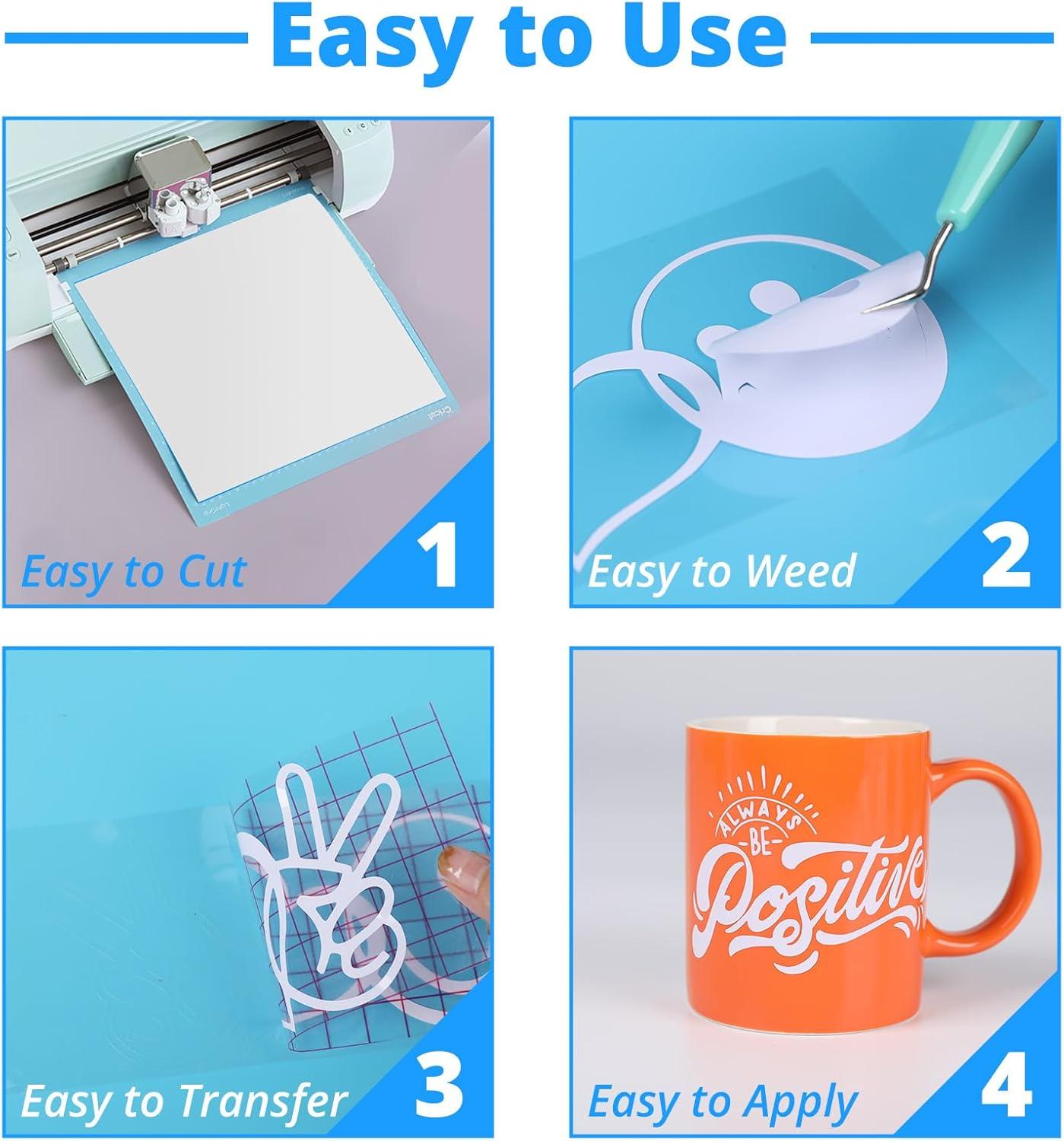 EXCELLENT ADHESION WITH DURABILITY: Unlike other white permanent vinyl with poor tack and easily peels off, our permanent vinyl for Cricut machine is super sticky, and can easily stick to any smooth surface. Besides, this vinyl is waterproof, UV-resistant, machine washable, and colorfast, it withstands washing and rain, and is suitable for indoor or outdoor use.