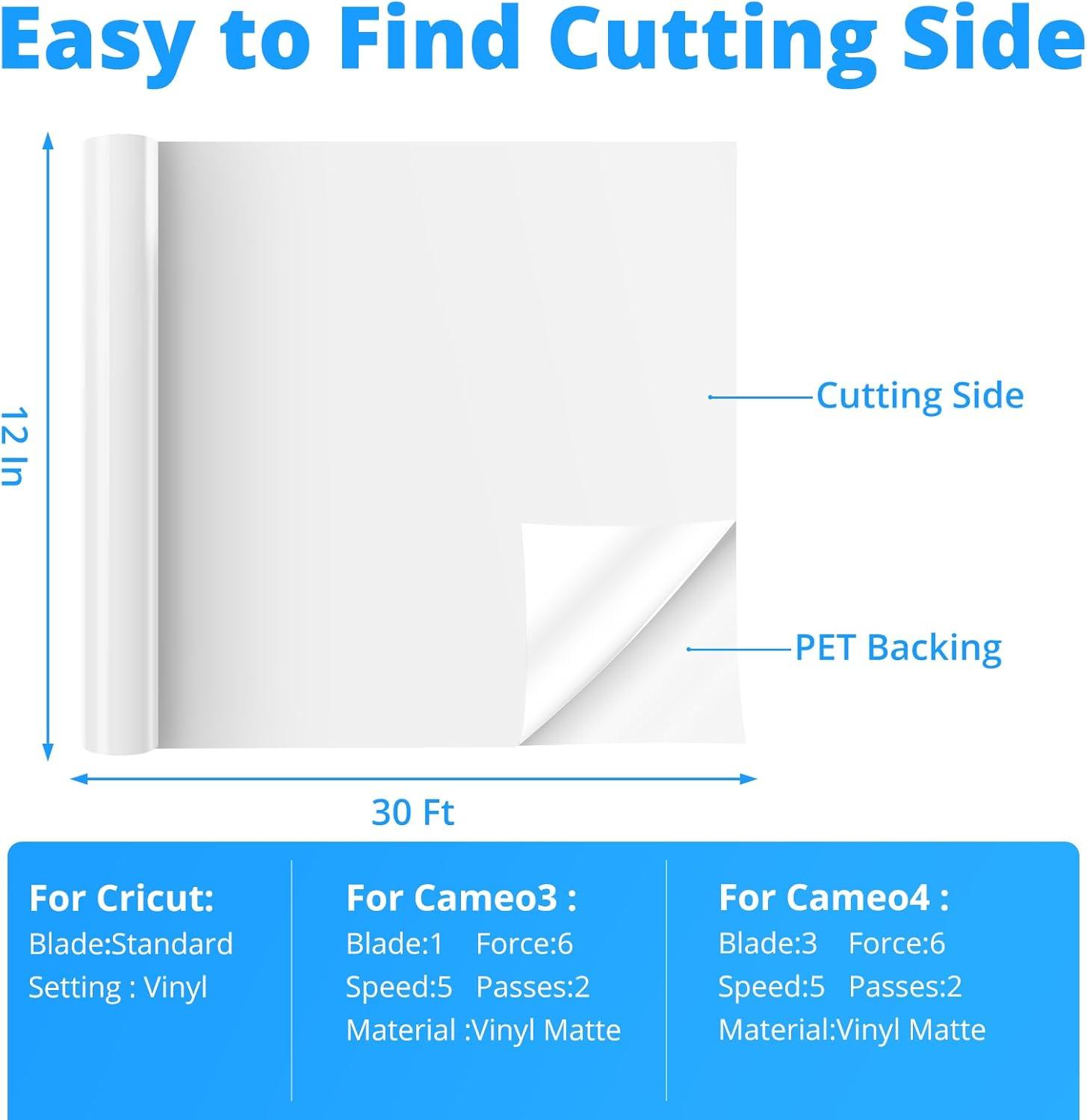 HTVRONT White Permanent Vinyl, 12" x 30 FT - Permanent Vinyl for Cricut Machine, Self Adhesive Vinyl Roll Stickers for Decorations, Gifts, Mugs, Craft and Sign Cutters (Matte White)(Matte White)