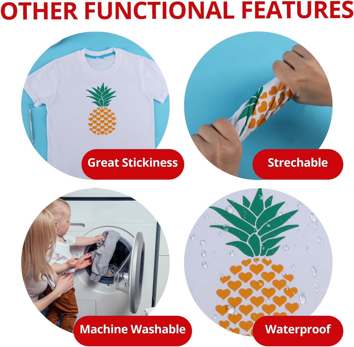 【Washable and Durable】Our HTVRONT heat transfer vinyl for t-shirt sticks well, and does not fade. Can stick to the fabric seamlessly and has good elasticity. After many times of washing and machine washing, the pattern on the clothes still maintains the color, and the pattern does not peel off