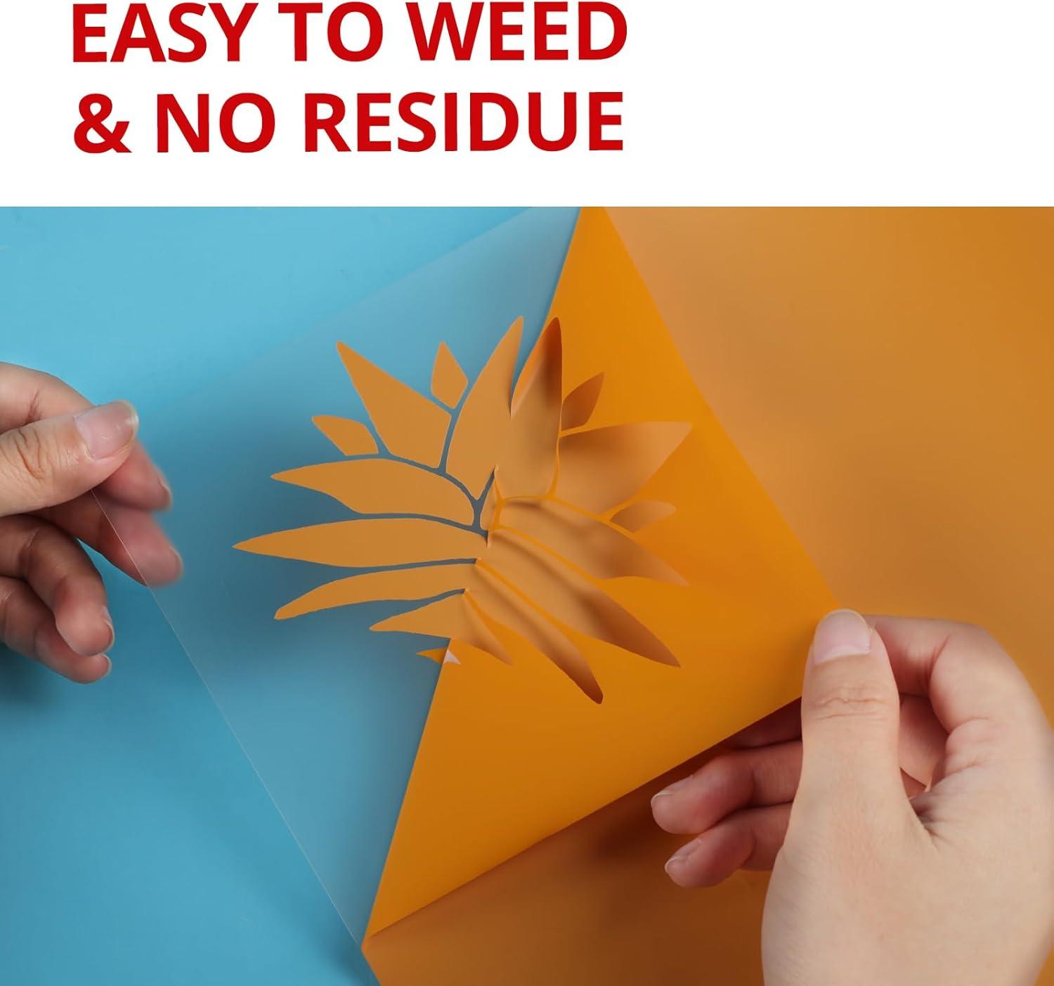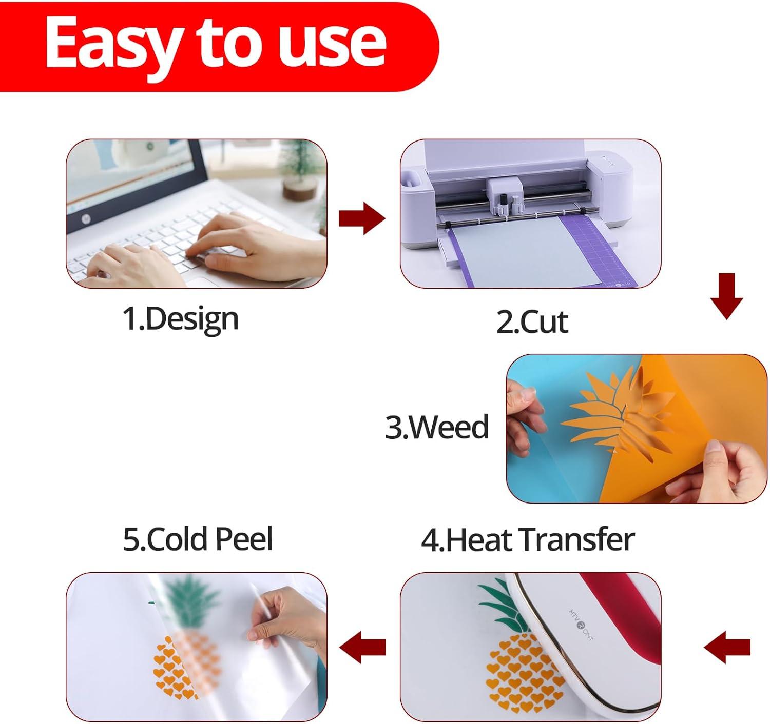 【Easy to Cut/Weed/Transfer】The htv vinyl bundle feature impressively pressure and temperature-sensitive make the weeding process smoothly. This htv sheets is temperature sensitive and easily transferred to any desired fabric surface. Note: Our heat transfer vinyl is cold stripped for use